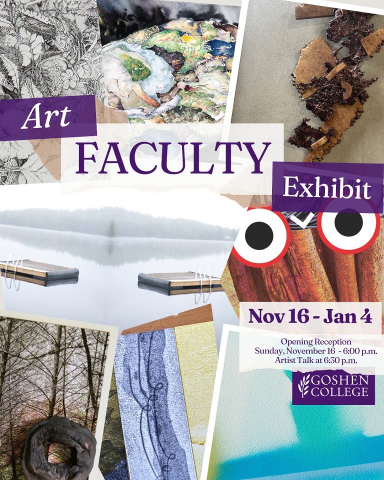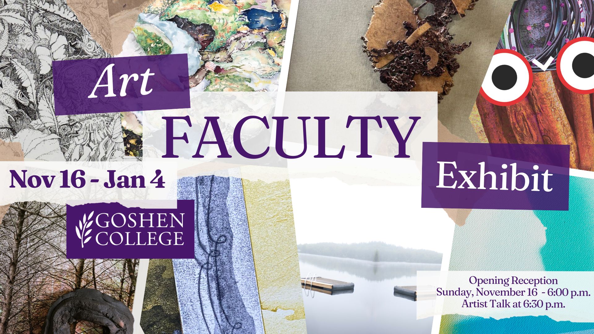 The reception begins at 6 p.m. on Sunday, November 16 inside the Hershberger Art Gallery with the artist talk beginning at 6:30 pm. Refreshments will be available.