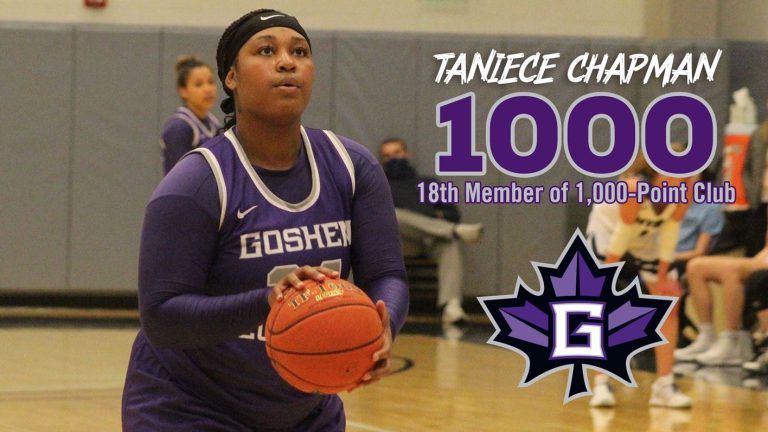TaNiece Chapman became the 18th Goshen College women's basketball player to score 1,000 career points on Feb. 17 in a home game against Huntington University in the Ruth Gunden Gymnasium.