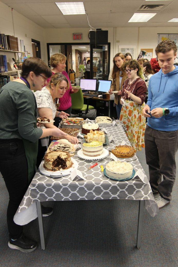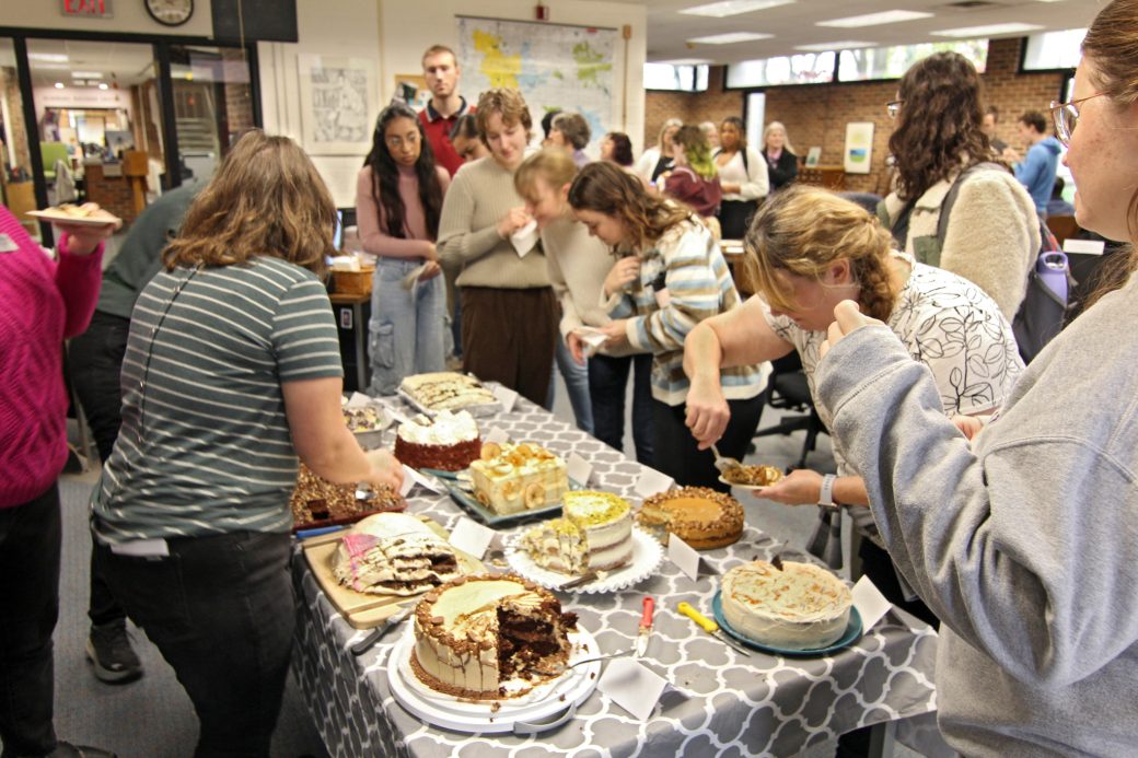 Every year, the Good Library hosts Cake Day, where anyone on the Goshen College campus can bake a cake and bring it in to compete. Cakes are judged based on taste and presentation, with a public tasting following the judges’ decision. This year’s winners were…