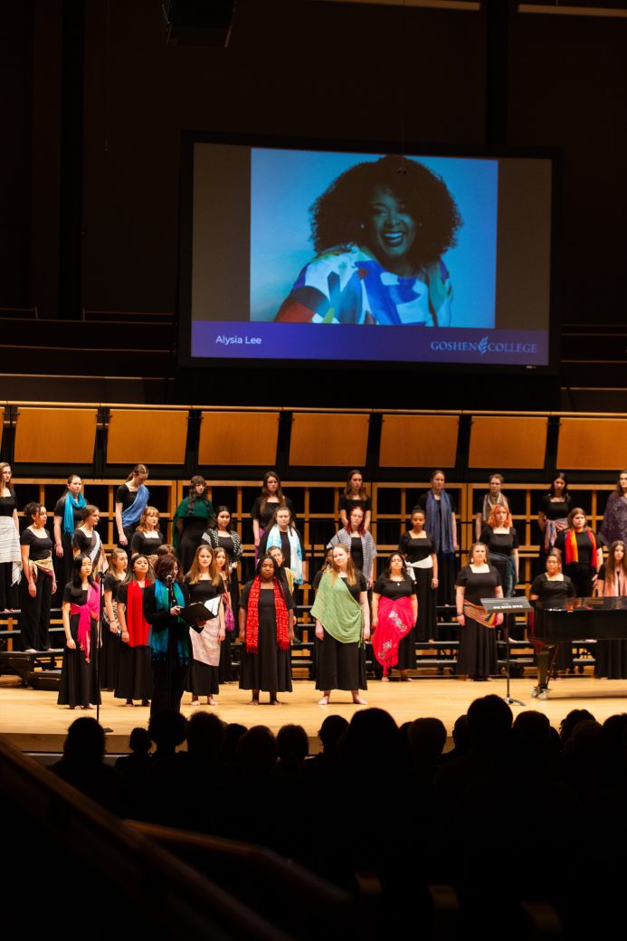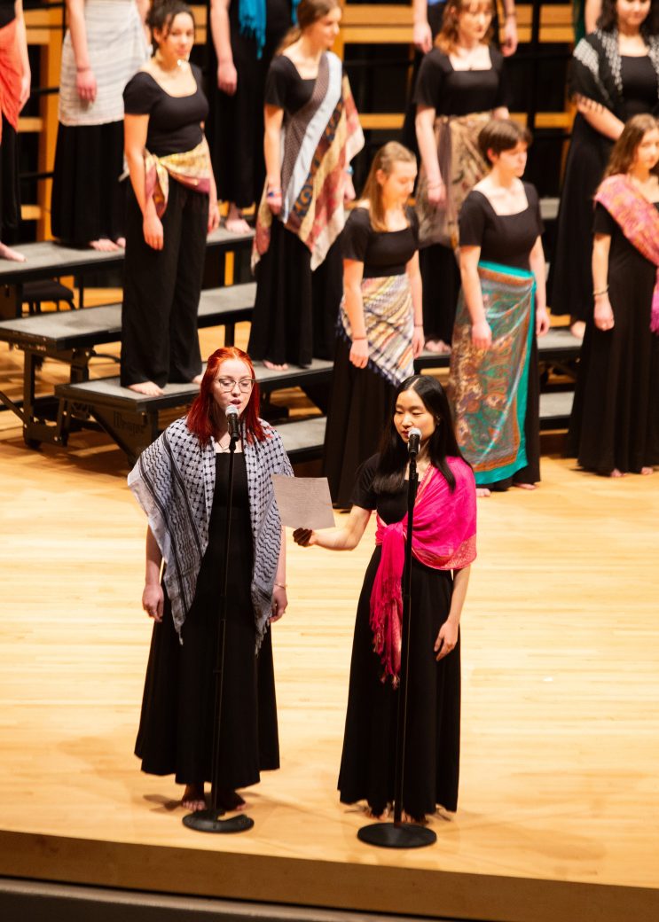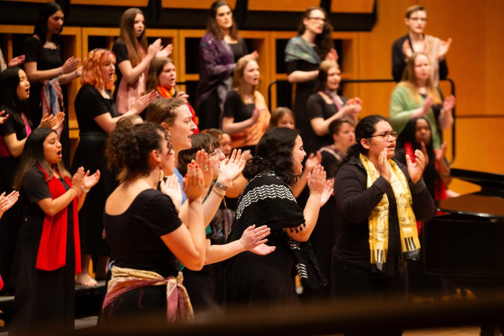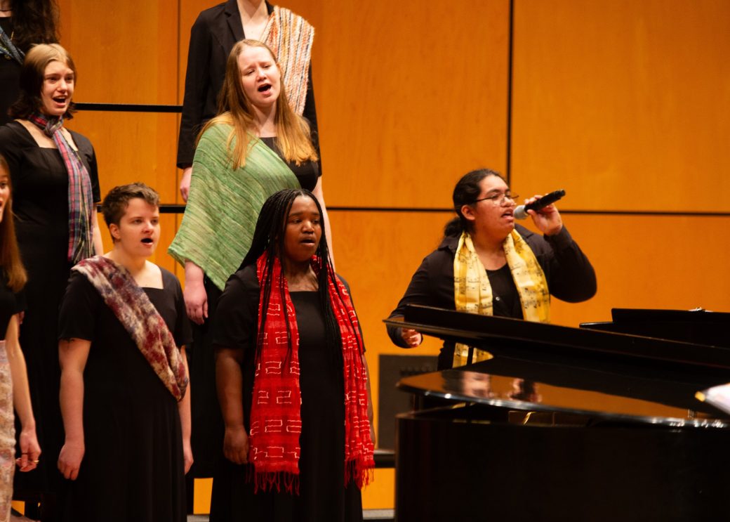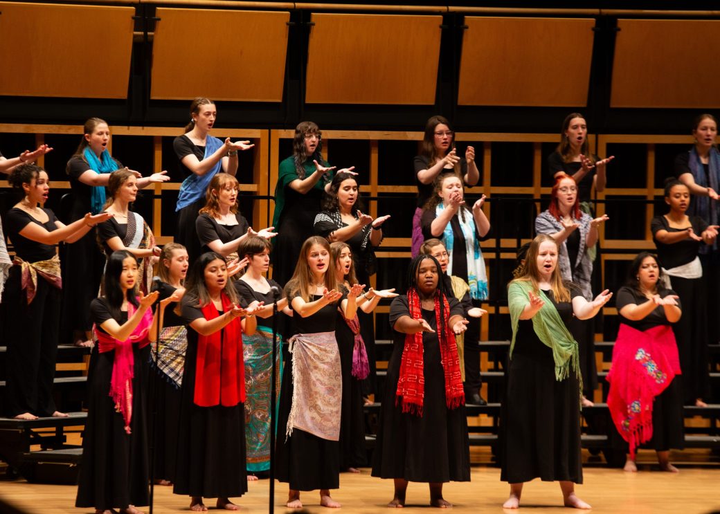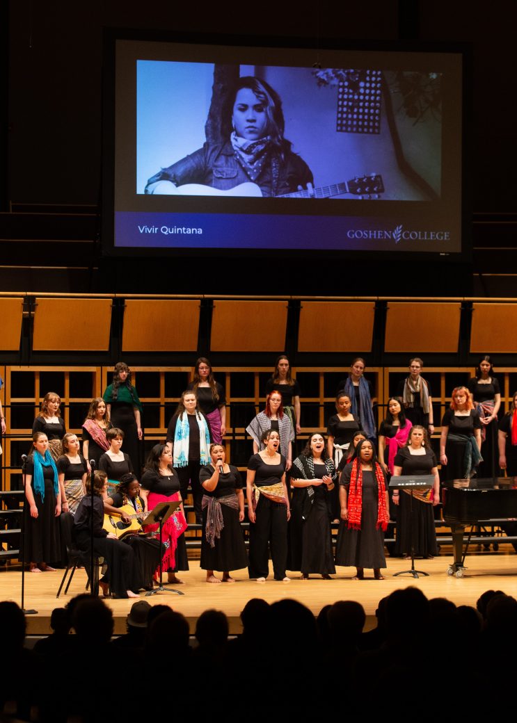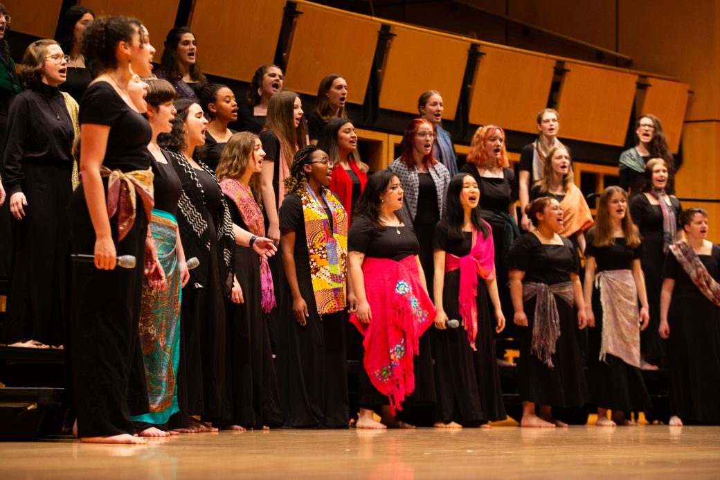 On February 25 – March 3, 2024, The Goshen College Voices of the Earth choir, directed by H. Roz Woll, spent their spring break touring and performing in churches and schools across Ohio and Chicago, with a home concert on Sunday, March 3 in the Goshen College Music Center’s Sauder Concert Hall. The tour focused on the theme “New Dreams” and featured music from various women-identifying artists.