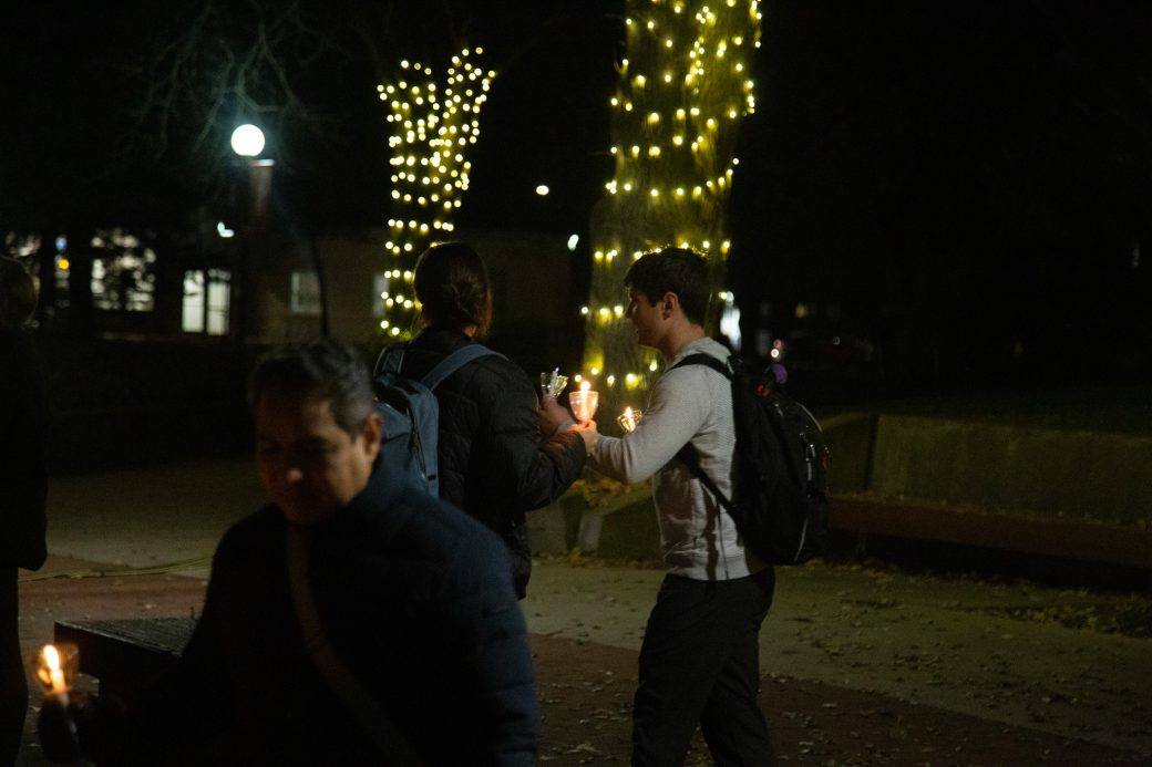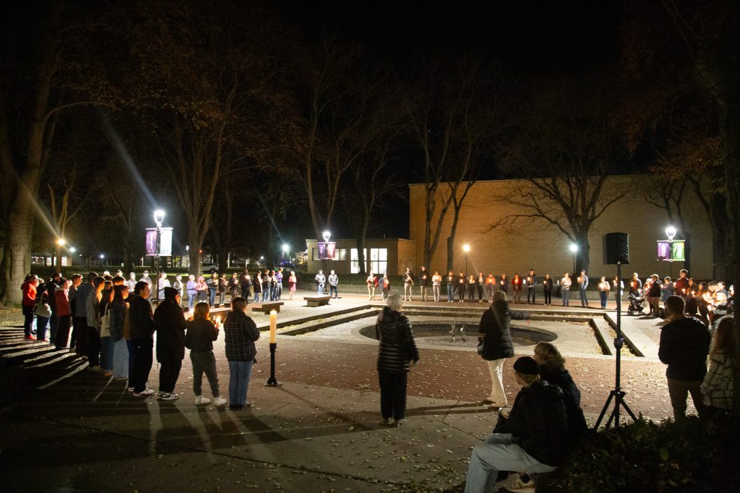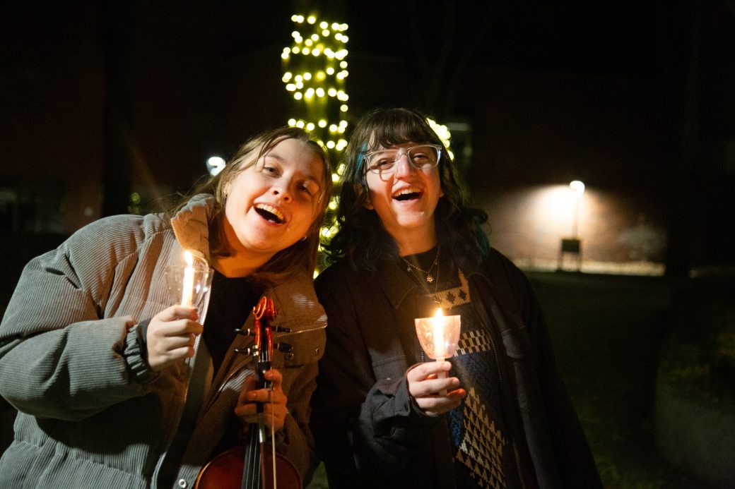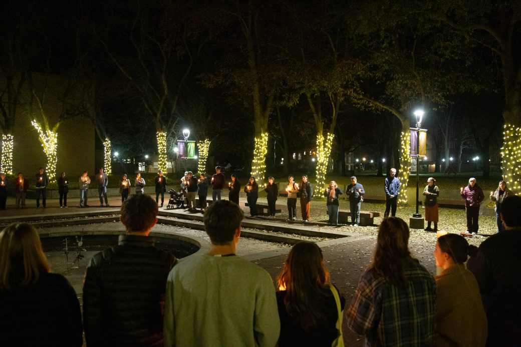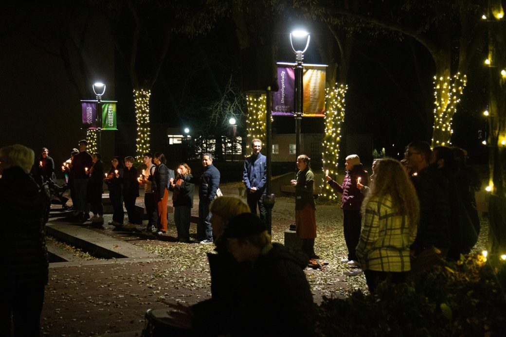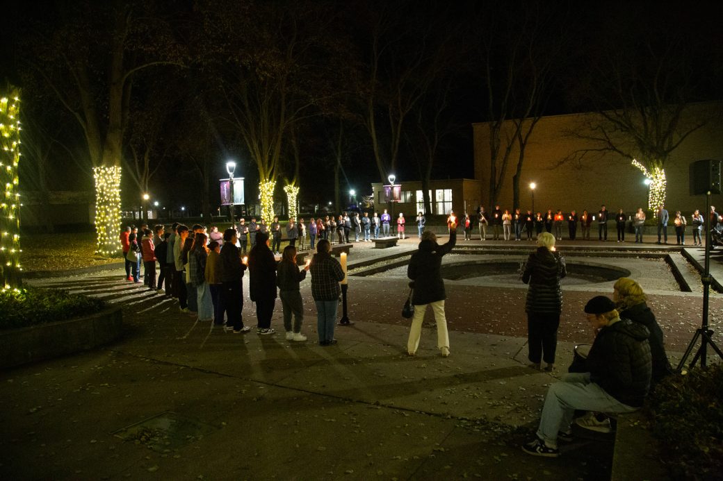 On Sunday night, students, faculty and staff marked the beginning of Advent by illuminating the campus. The group came together in the Church-Chapel to sing and hear scripture, before processing by candlelight to Schrock Plaza. There, President Stoltzfus invited all to illuminate the campus, and the trees lit up along with everyone’s candles!
