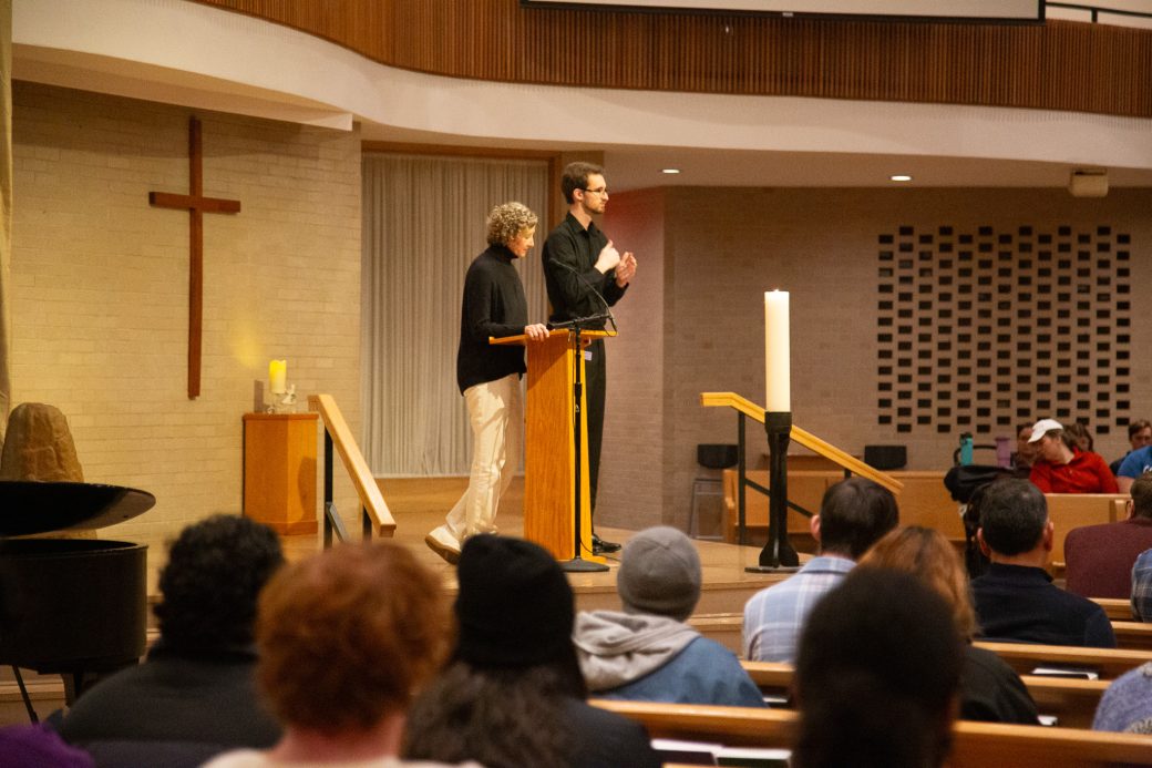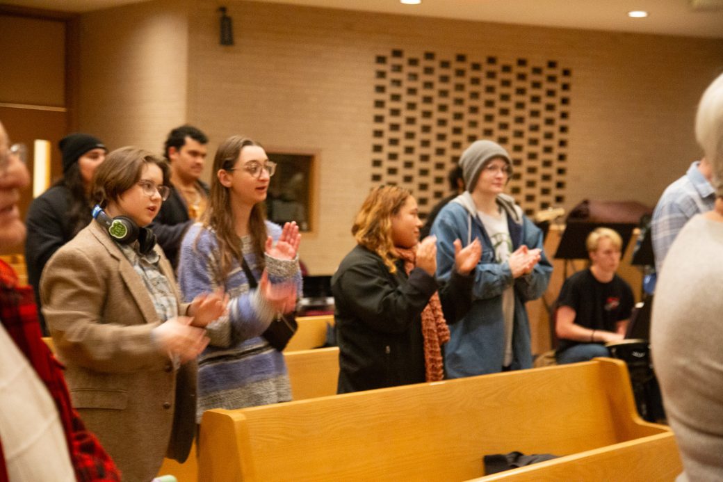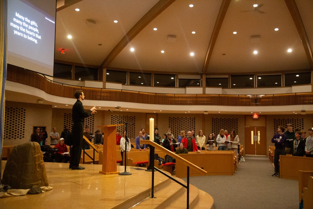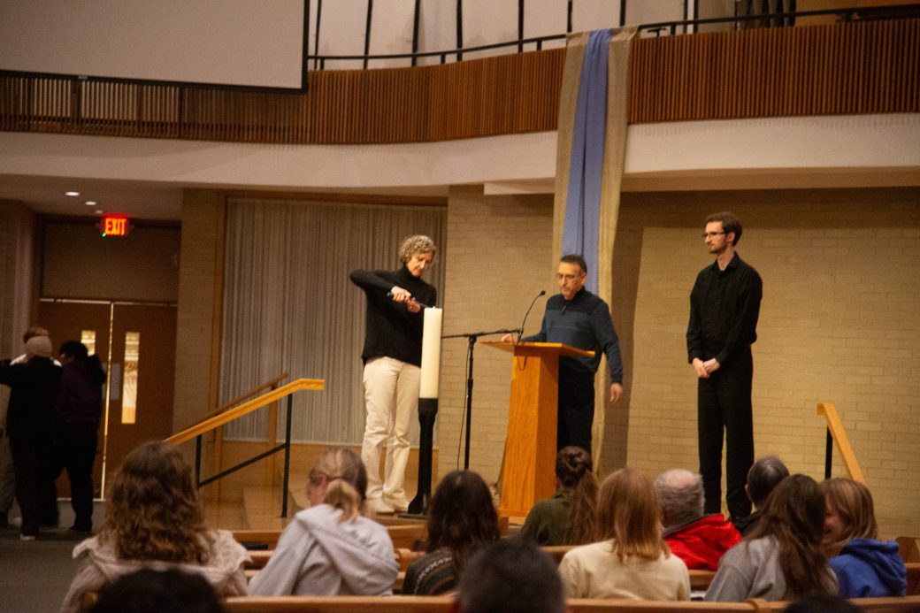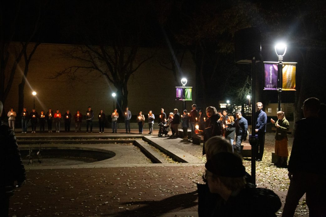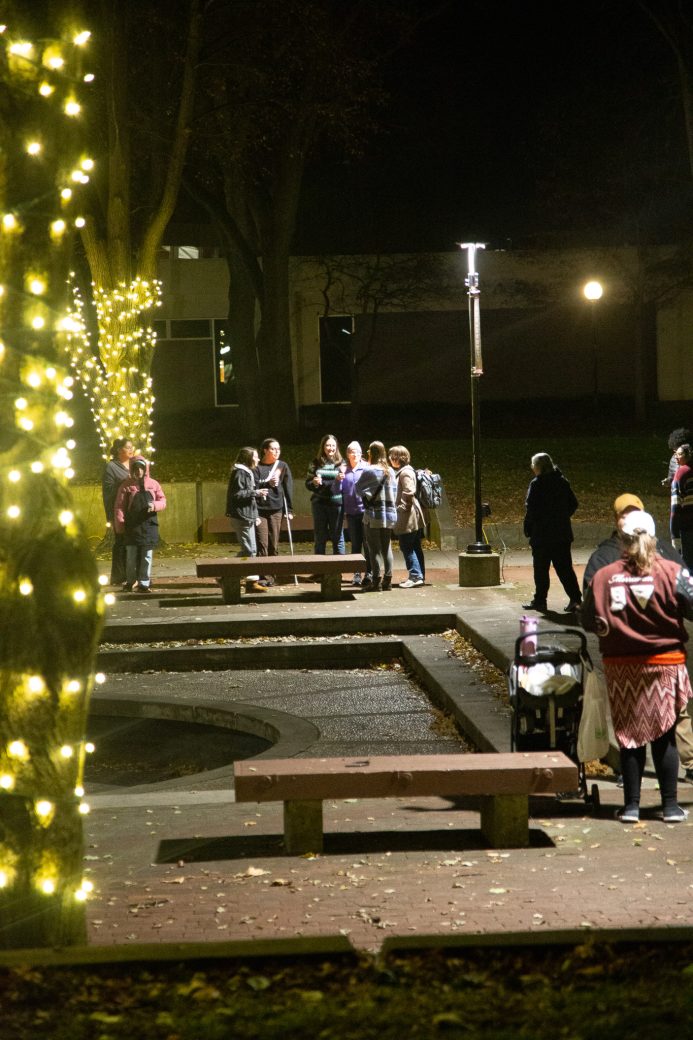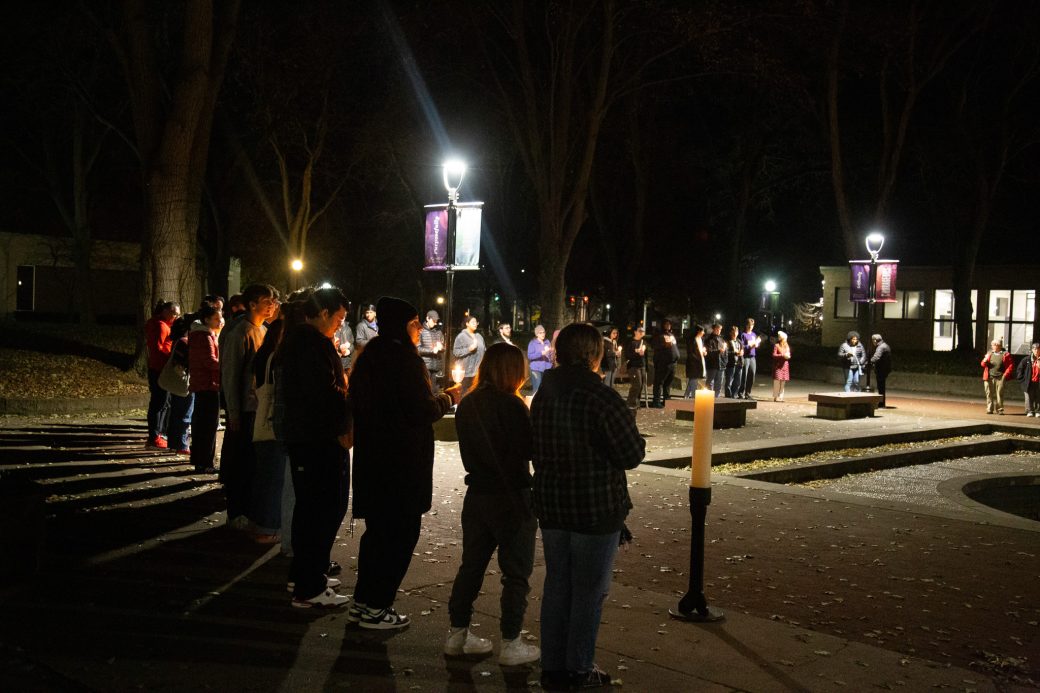 On Sunday night, students, faculty and staff marked the beginning of Advent by illuminating the campus. The group came together in the Church-Chapel to sing and hear scripture, before processing by candlelight to Schrock Plaza. There, President Stoltzfus invited all to illuminate the campus, and the trees lit up along with everyone’s candles!