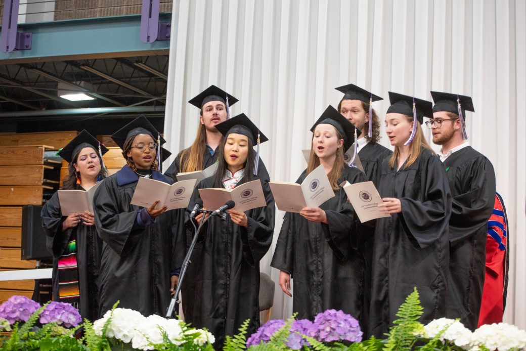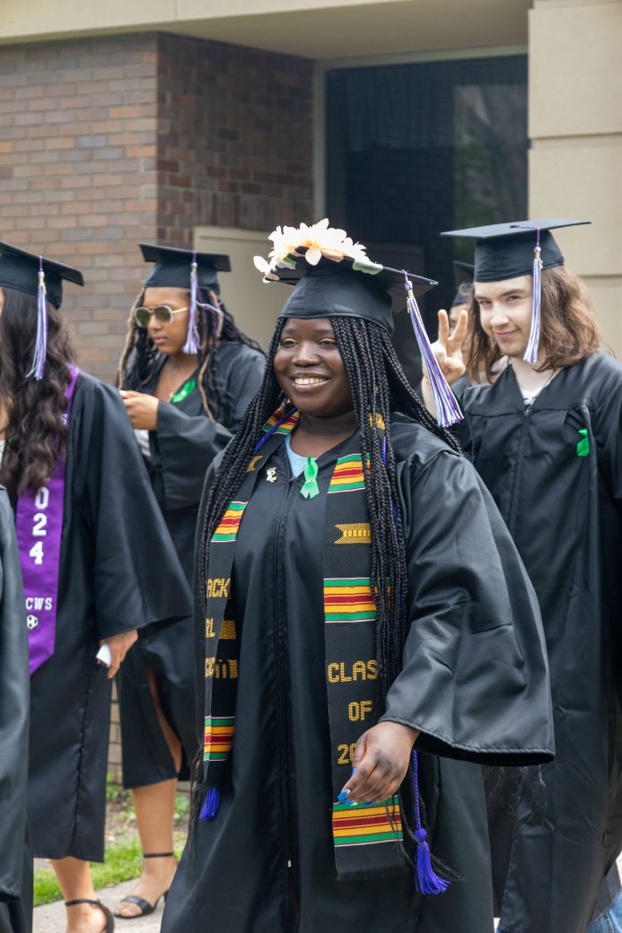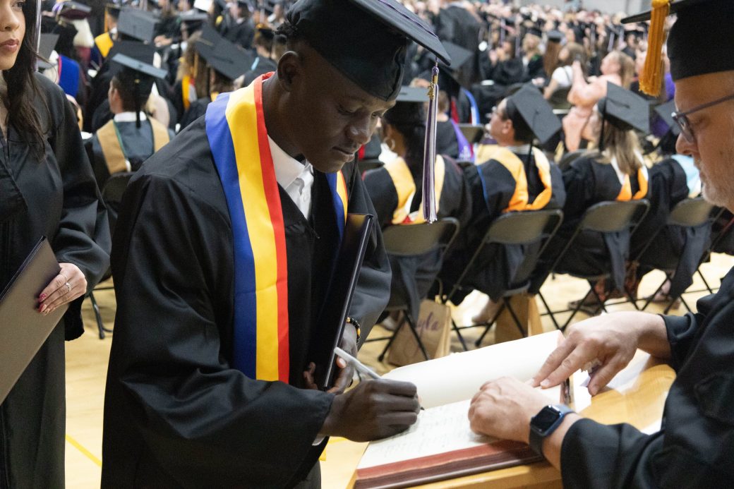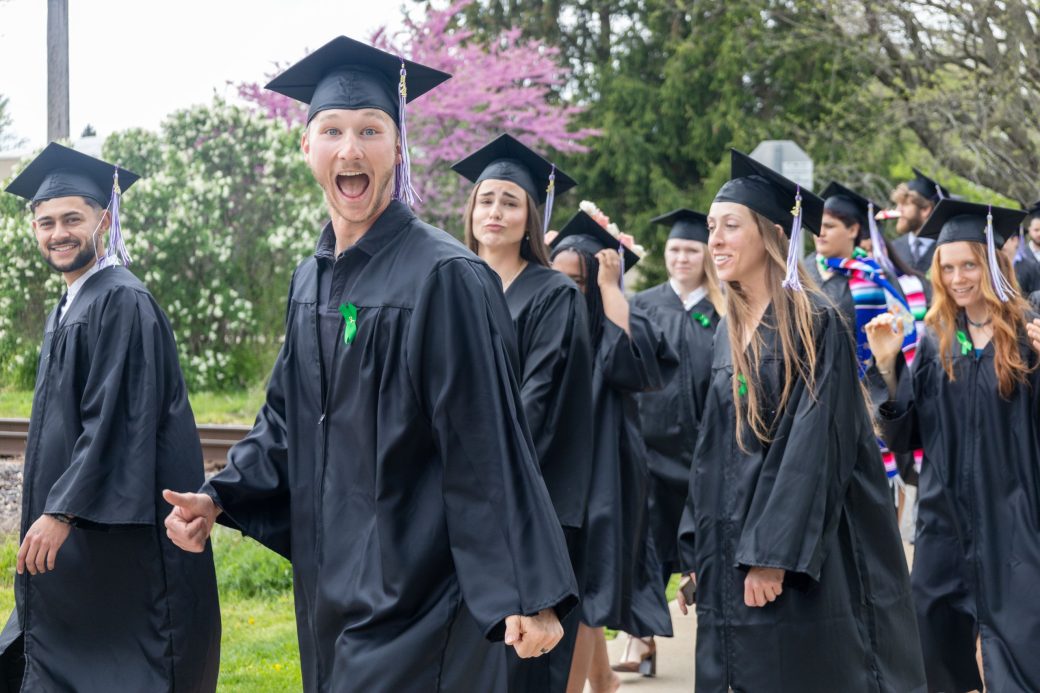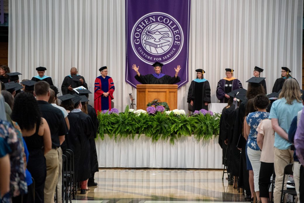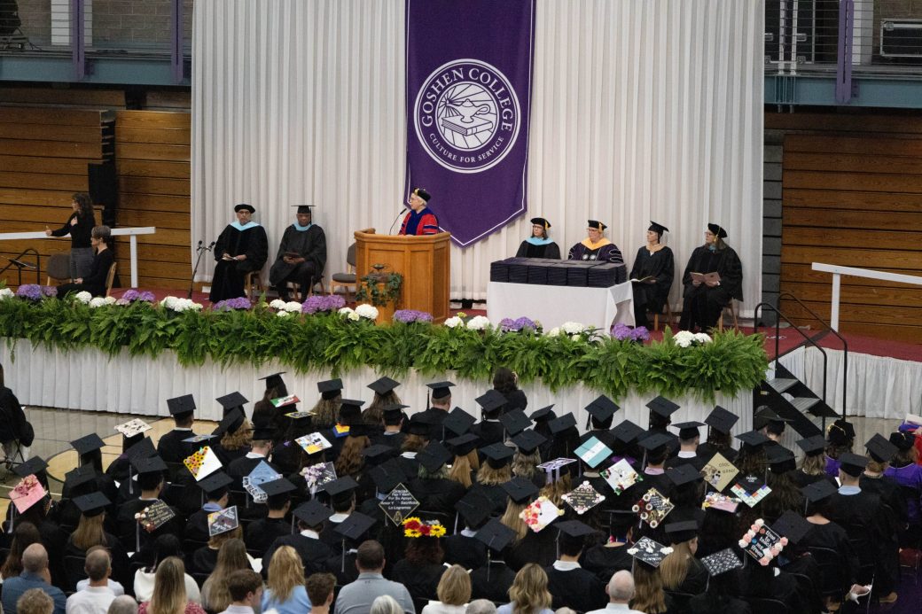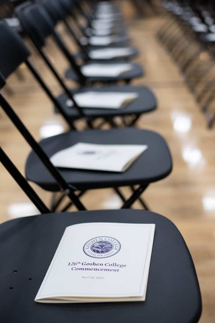 On April 28, 2024, members of the Goshen College Class of 2024 received undergraduate and graduate degrees at the college’s 126th commencement in the RFC Gym.