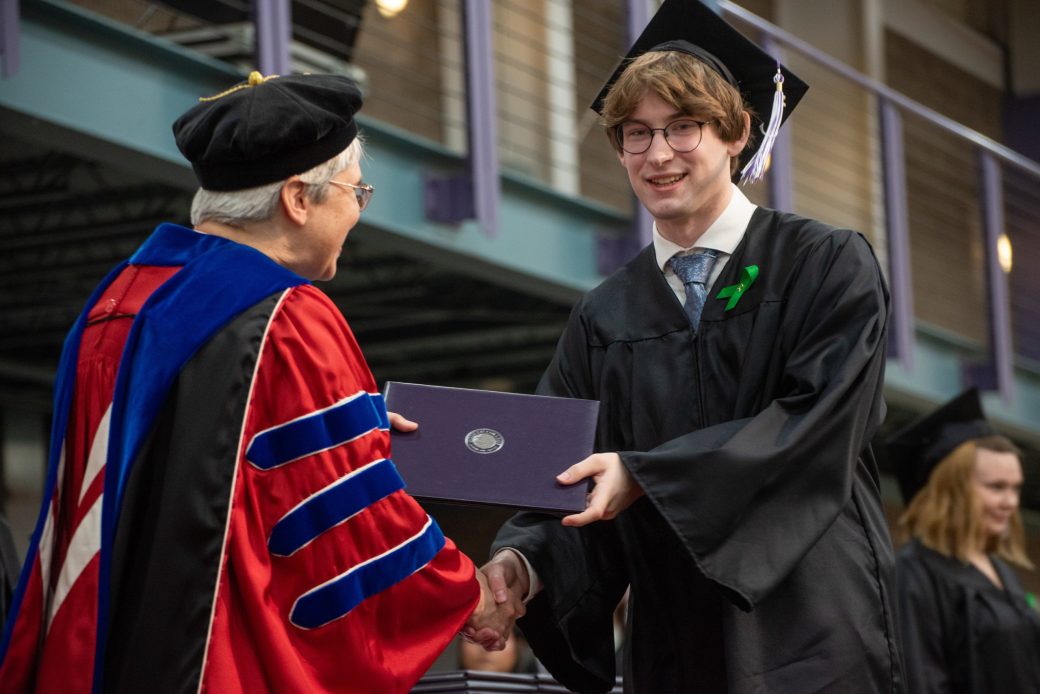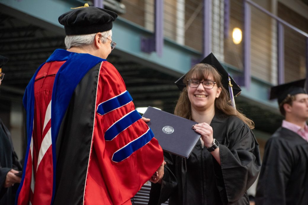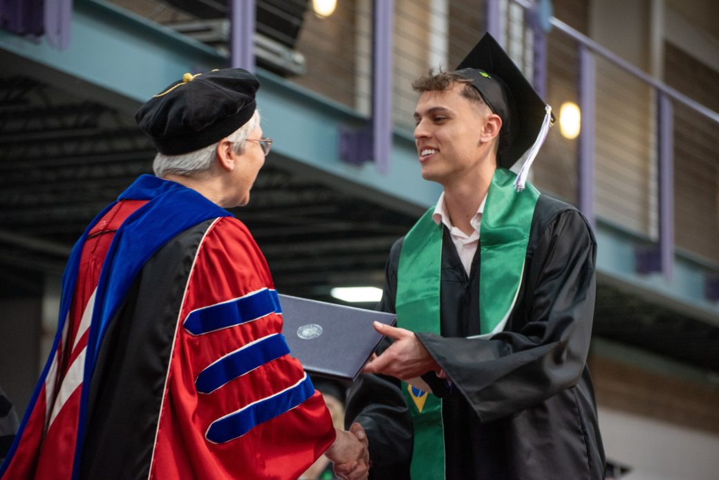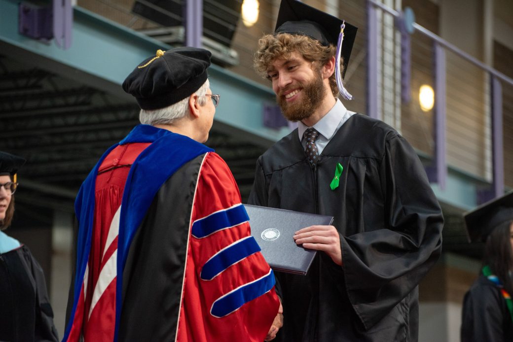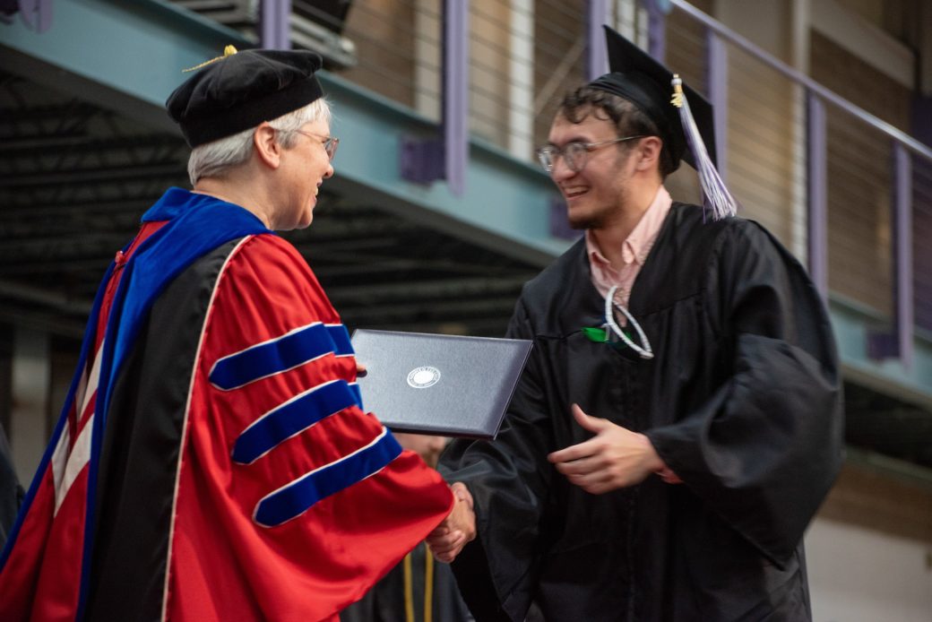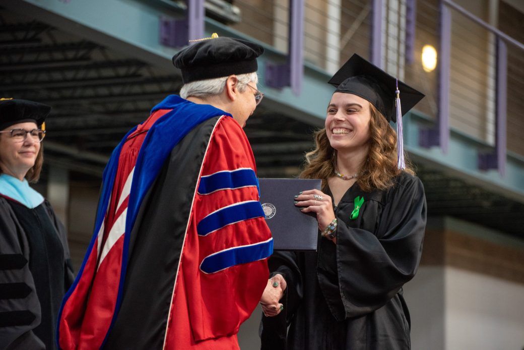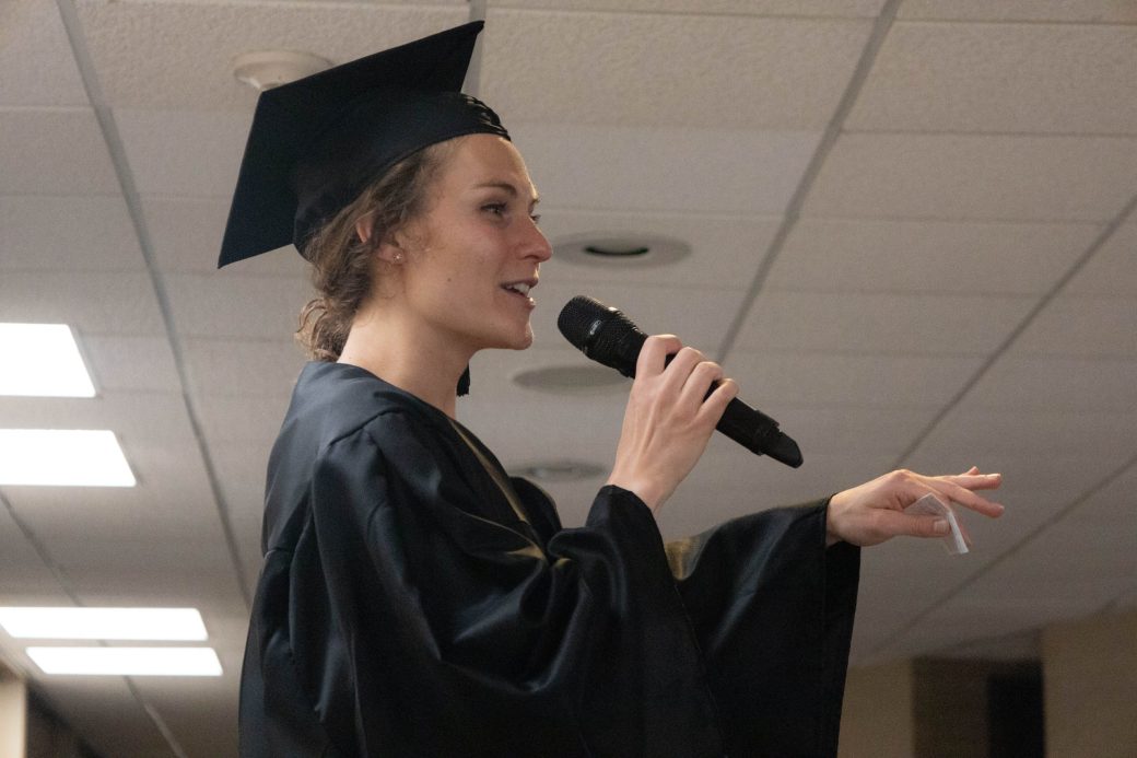 On April 28, 2024, members of the Goshen College Class of 2024 received undergraduate and graduate degrees at the college’s 126th commencement in the RFC Gym.