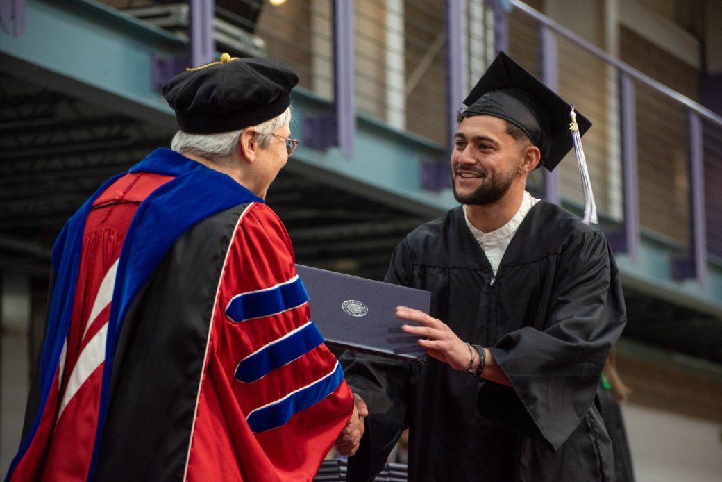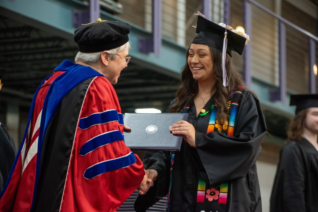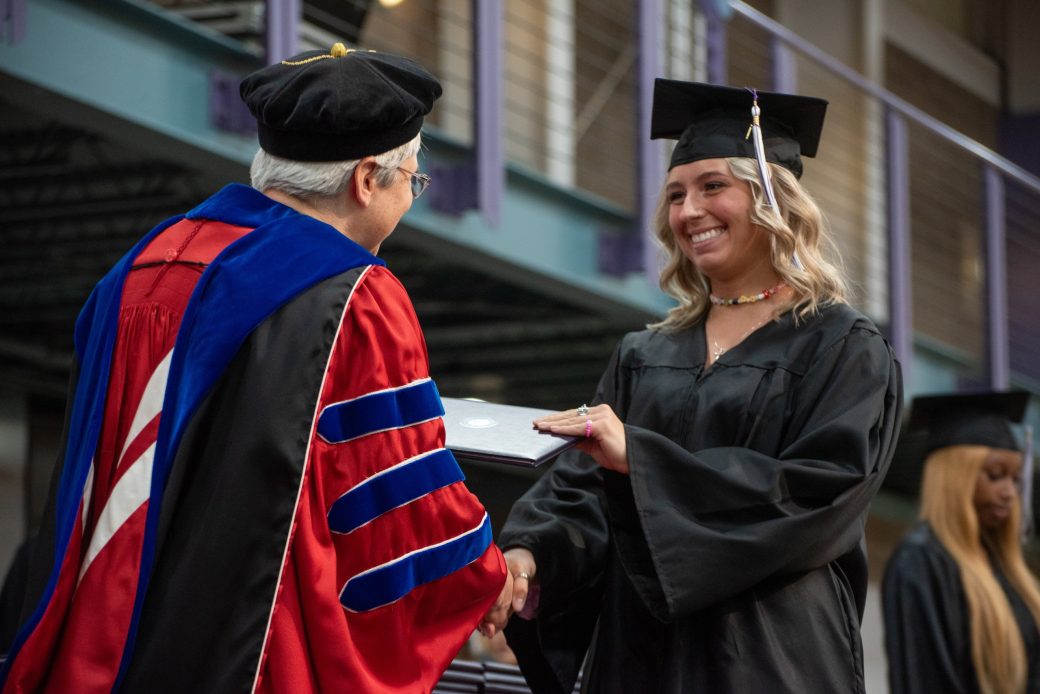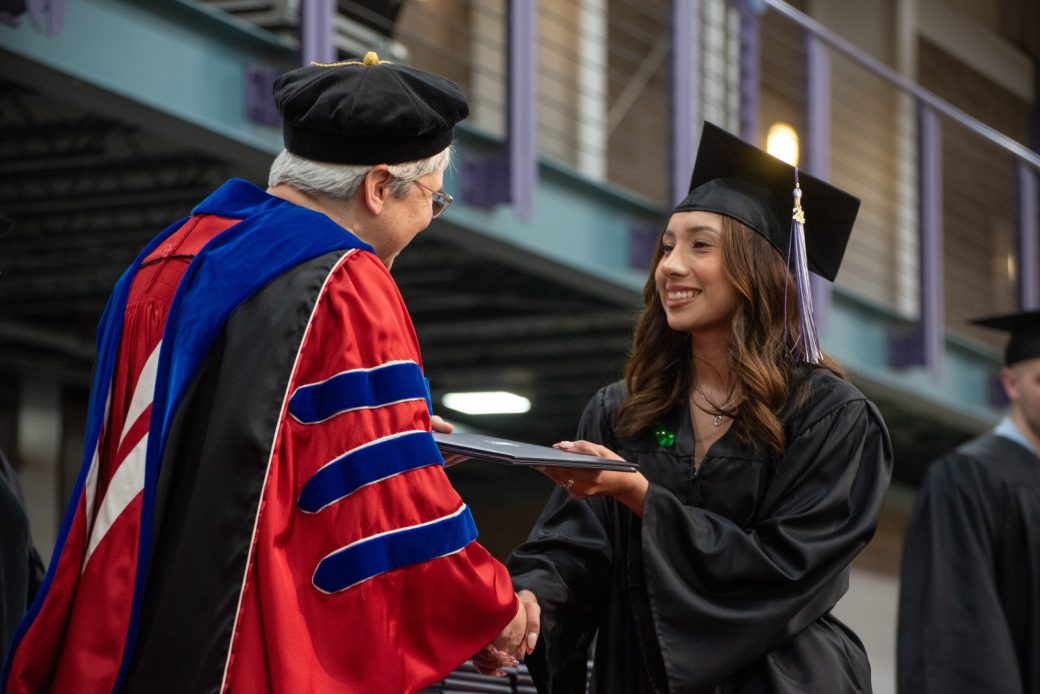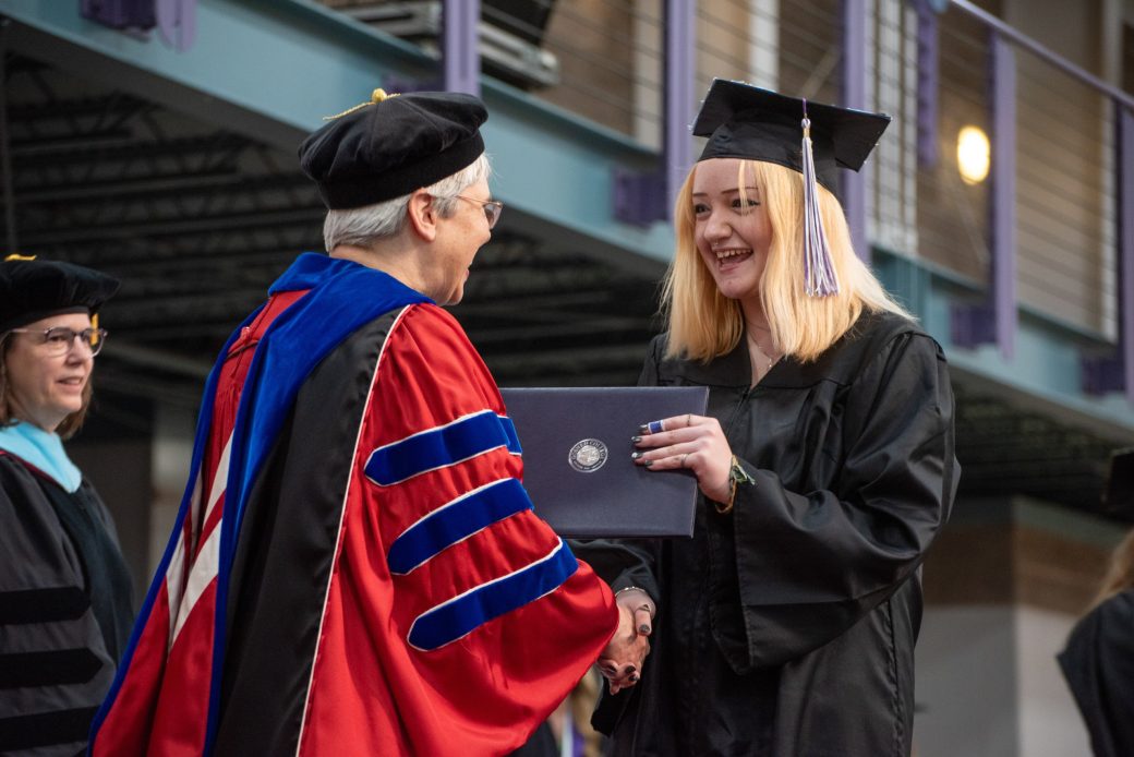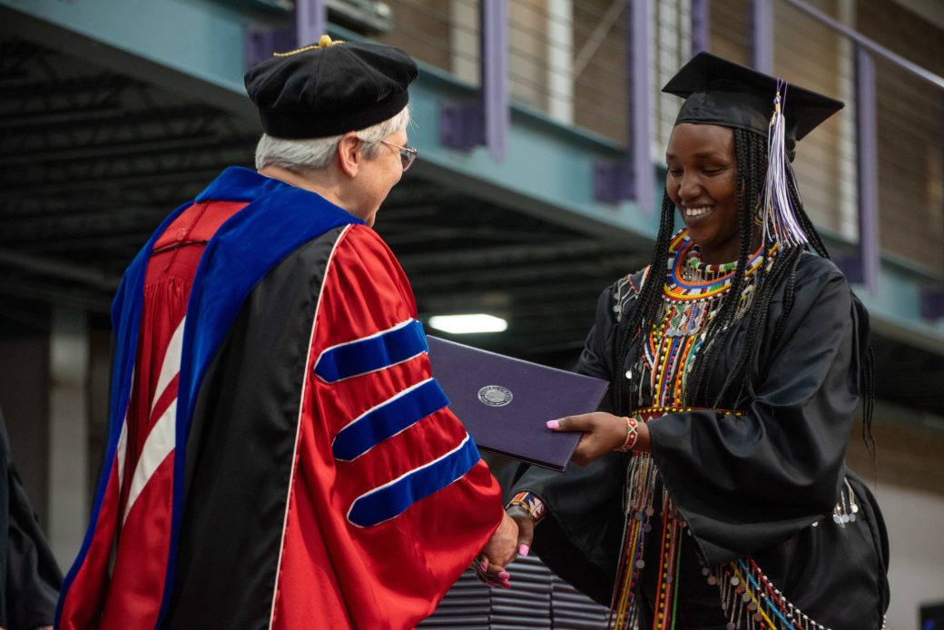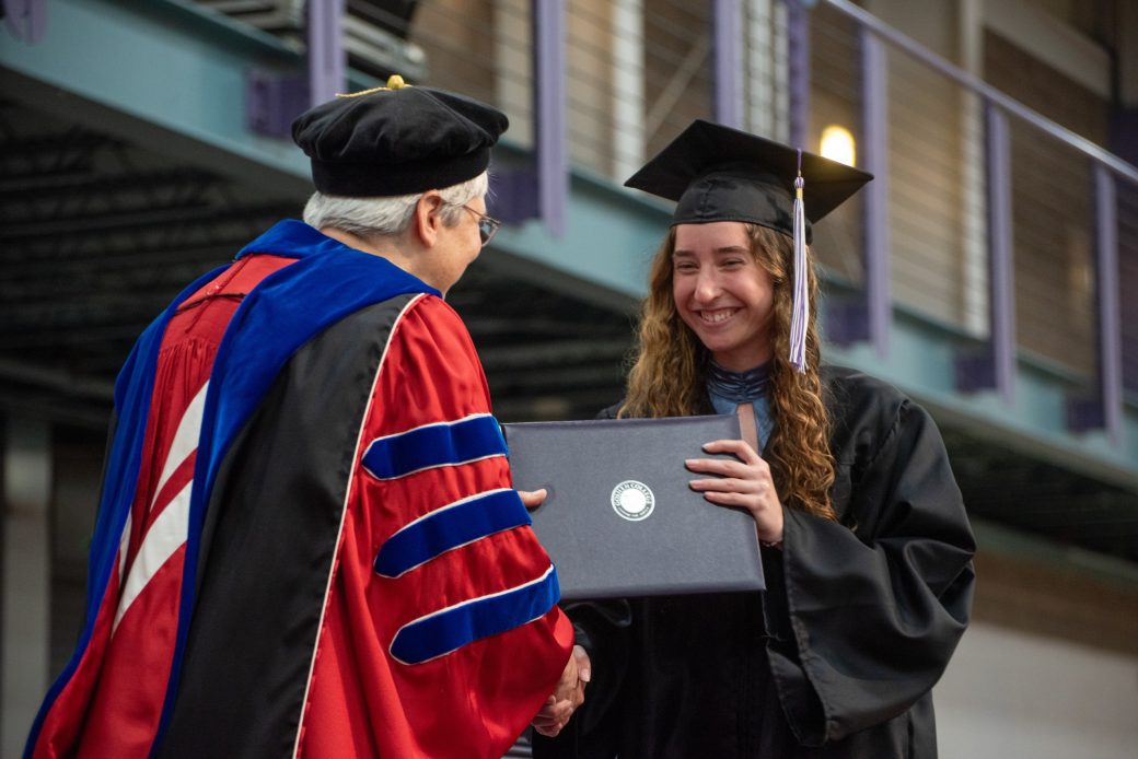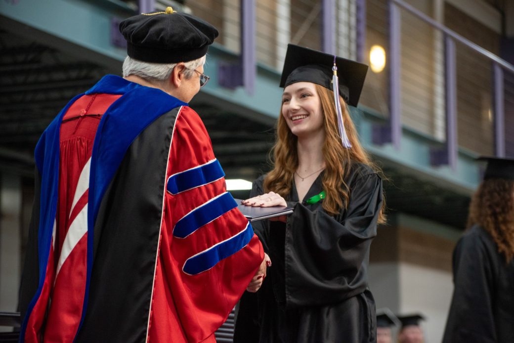 On April 28, 2024, members of the Goshen College Class of 2024 received undergraduate and graduate degrees at the college’s 126th commencement in the RFC Gym.