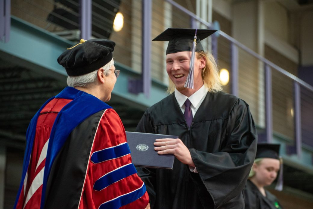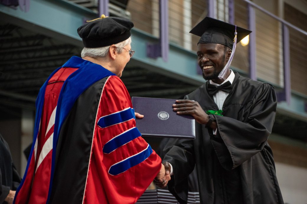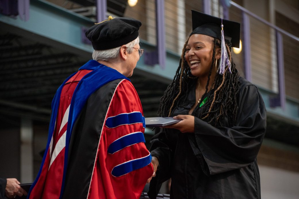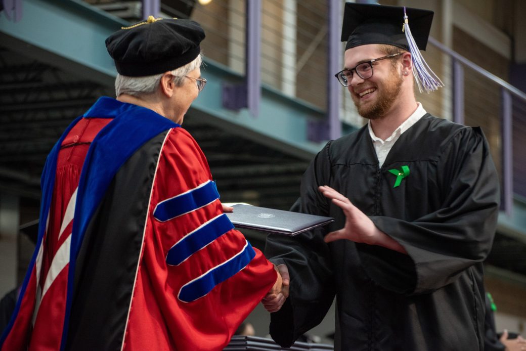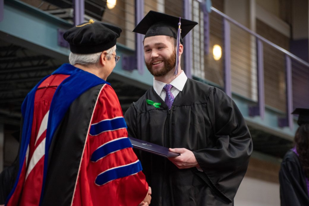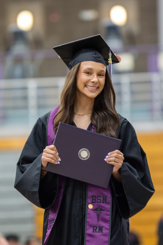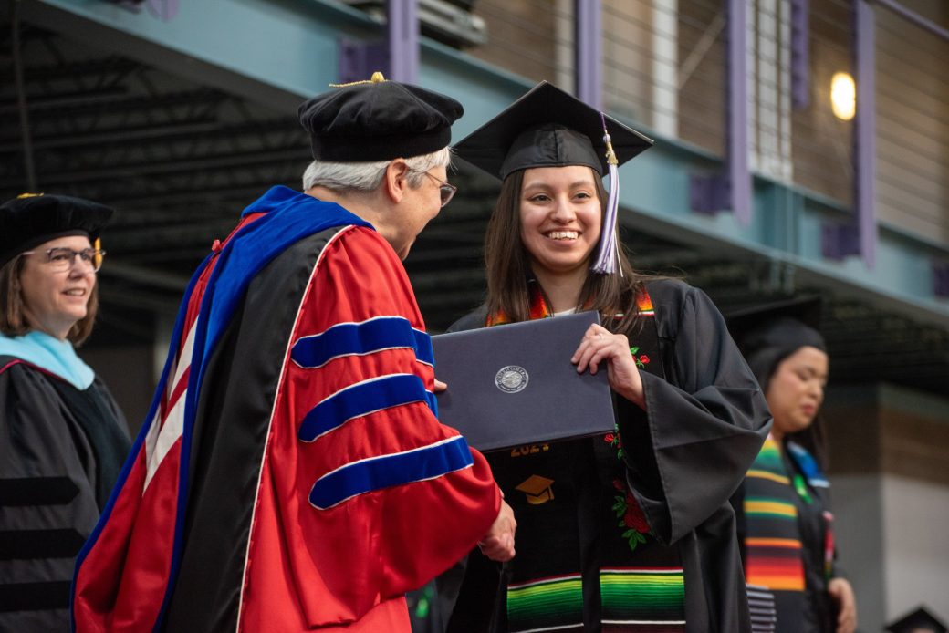 On April 28, 2024, members of the Goshen College Class of 2024 received undergraduate and graduate degrees at the college’s 126th commencement in the RFC Gym.