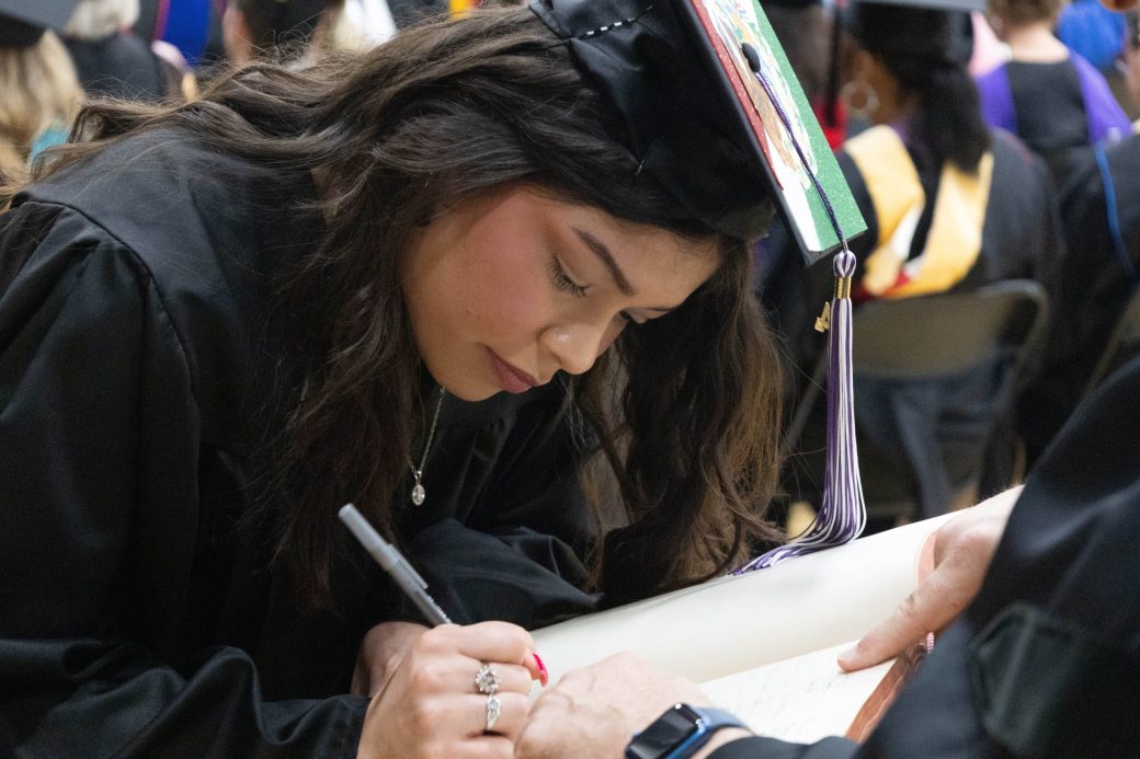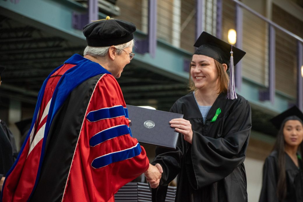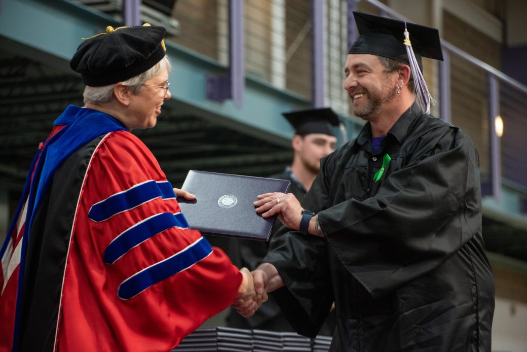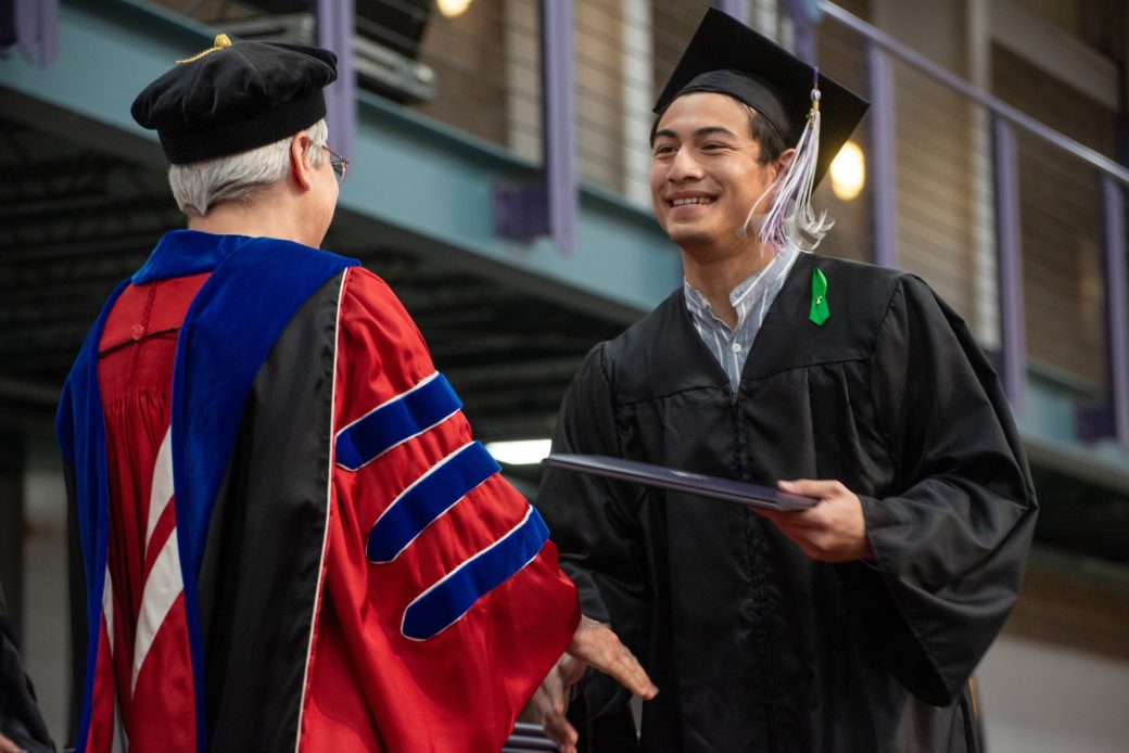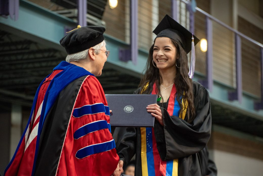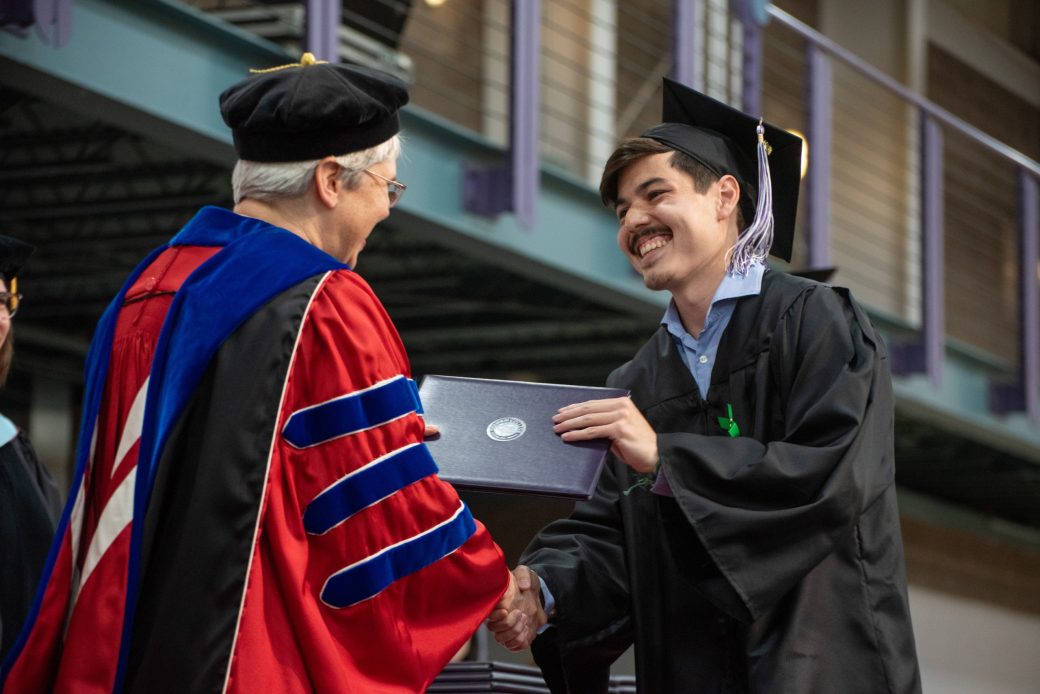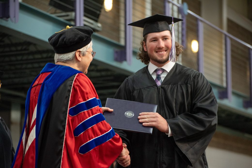 On April 28, 2024, members of the Goshen College Class of 2024 received undergraduate and graduate degrees at the college’s 126th commencement in the RFC Gym.