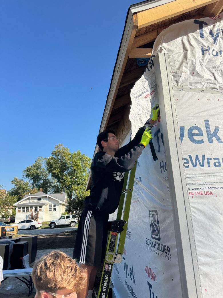 On Monday, September 29, 2025, Goshen College first-year students, staff and faculty participated in the annual Community Engagement Day in partnership with multiple Goshen and Elkhart-area organizations. Projects included residential construction, planting trees, food preparation, cleaning and more.