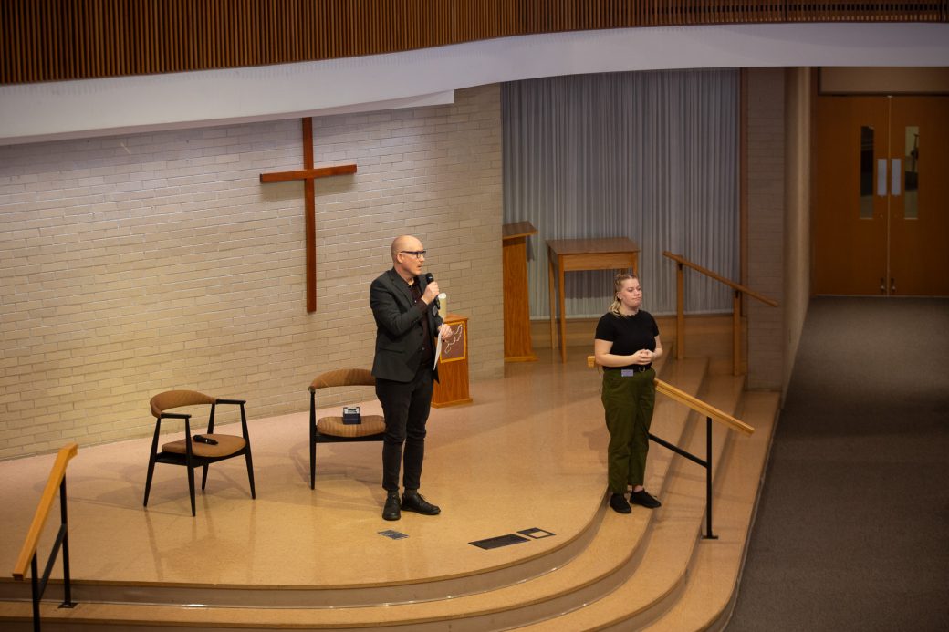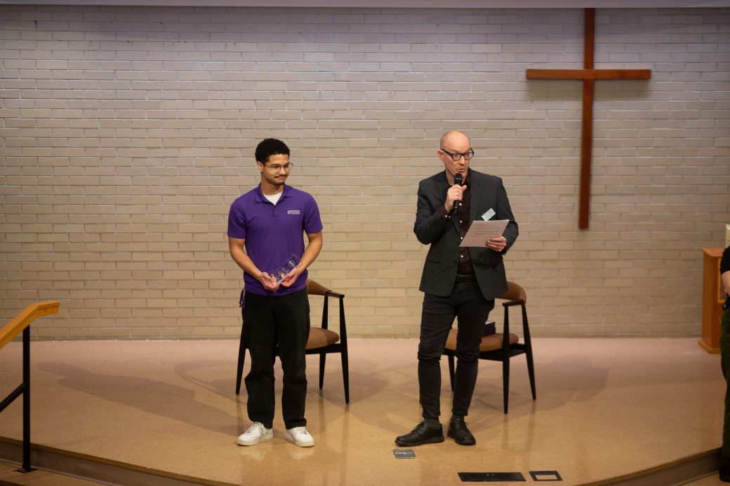 The fair included a convocation, where Vibrant Communities and Goshen College presented junior Fernando Daza with the Vibrant Student Leader Award for his contributions to the campus and the broader Goshen community.