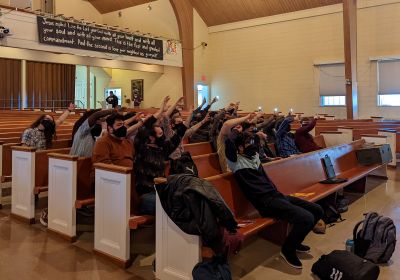 We began as usual. After having breakfast with our host family, my roommate and I walked back to the West Philadelphia Church since we only were a few blocks away. After a thorough sweep of the church and an abysmal attempt at beating our count-off record, we were off to our first school of the day. We arrived at Dock Academy shortly before 11, and after a quick warm-up, the students began piling in. A shortened program was selected for the schools, as many of them didn’t have the time for a full run of our repertoire. After the chapel performance, the Dock Academy choir students stayed behind. We sang two songs with them, and then they performed two songs for us, starring singers Marcia Yost (Alto) and Scott Hochstetler (all parts). We made sure to show our support for the younger choir by waving our arms and giving them a standing ovation after their performance.