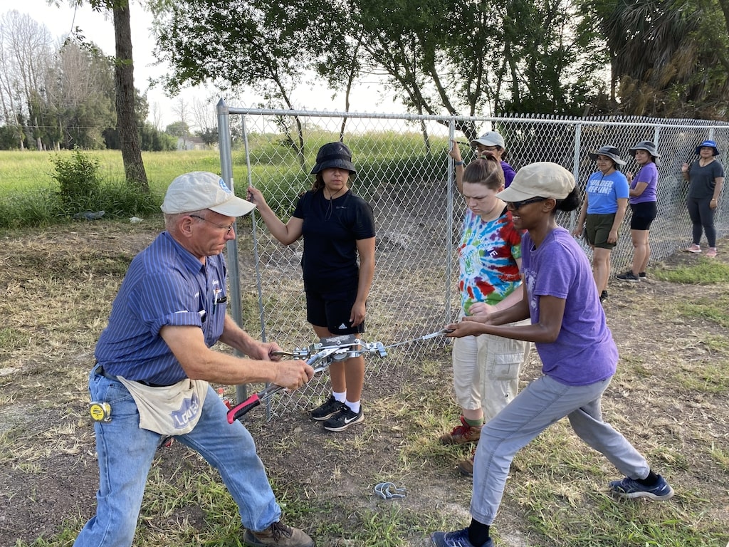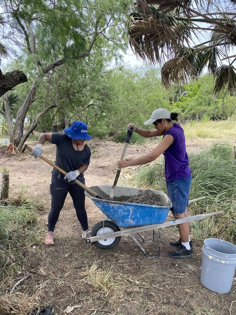 Después de estar aquí por casi dos semanas, seguimos construyendo la cerca alrededor de la Posada. Todas las mañanas los voluntarios de MDS (Mennonite Disaster Service o el Servicio Mennonita de Desastres), Larry y Roger, comienzan el día con una descripción general de las tareas que hay que llevar a cabo y todos pueden elegir entre ellas: mezclar concreto, cavar hoyos, colocar postes, o ajustar y atar la cerca. Todavía estamos trabajando duro para completar lo más que podamos durante nuestra estancia aquí en Texas. Con la ayuda de los voluntarios de MDS que nos guiaron durante estos días, la cerca se ve mejor de lo que se veía hace dos semanas. Los trabajadores de la Posada han mostrado su agradecimiento dándonos golosinas como paletas de helado y guacamole durante nuestros descansos.