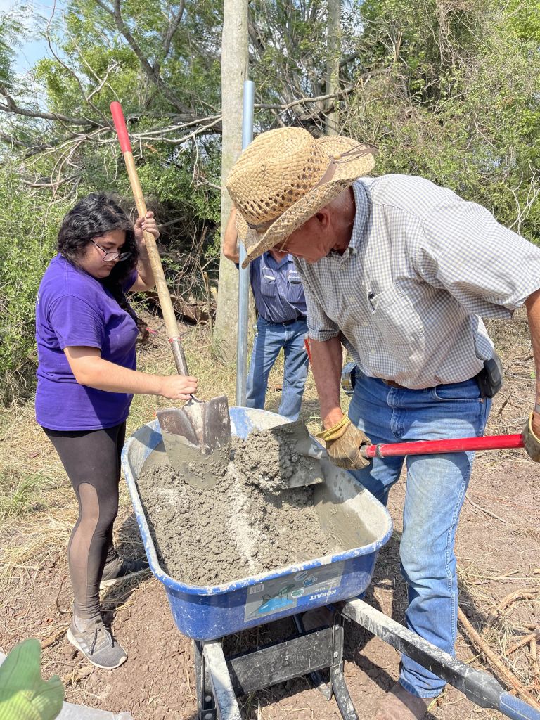 Fue mi primera experiencia haciendo este tipo de trabajo, ya que en mi propia cultura lo hacen los hombres. Nuestro grupo ha hecho un gran trabajo al mantenerse al día con el arduo trabajo que hemos estado haciendo durante las últimas dos semanas. Hemos estado progresando bastante hasta el punto en que cavamos más hoyos en una nueva área donde irá la cerca, lo cual requiere de más cemento para ajustar los postes en los agujeros.