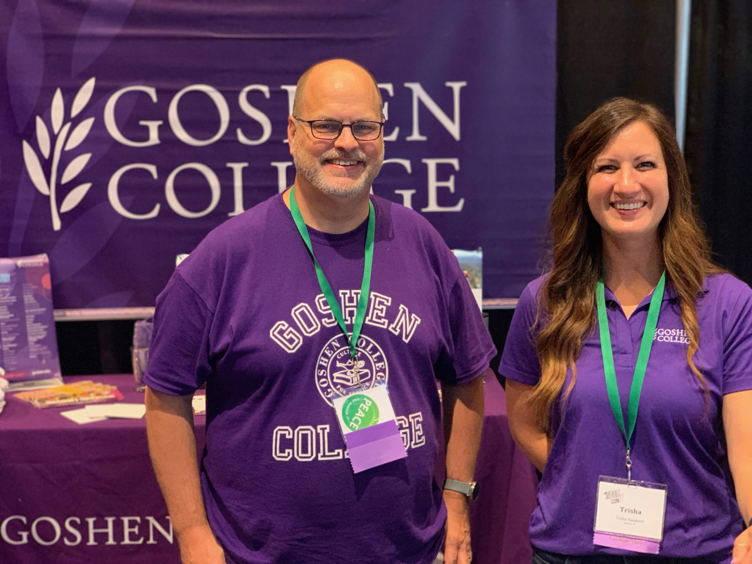 Several employees, including President Rebecca Stoltzfus her spouse Kevin Miller, are available at the Goshen College booth in the exhibit hall, and GC will host an alumni and friends reception on Thursday, July 8 at 9 p.m.