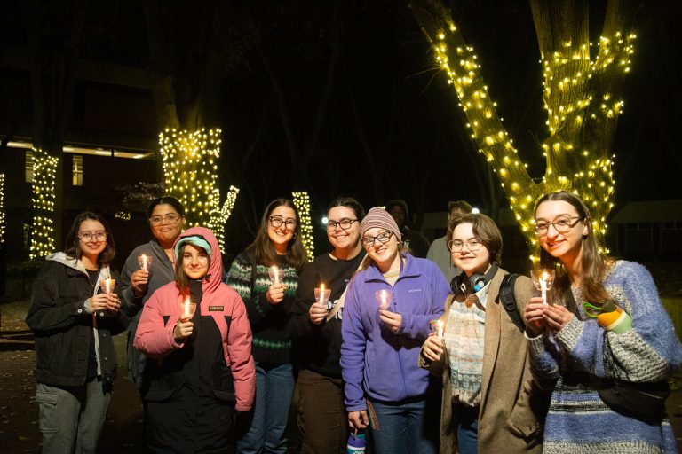 On Sunday night, students, faculty and staff marked the beginning of Advent by illuminating the campus together.