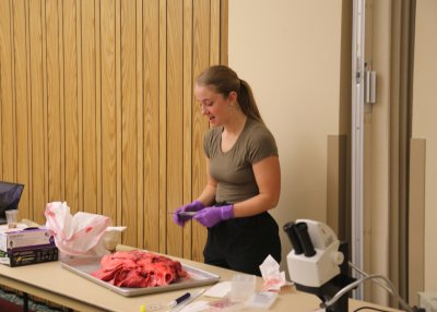 Julia Hitt, a sophomore molecular biology and biochemistry major from Cincinnati, Ohio, and Neil Detweiler are working together to research bovine lung physiology. This project will specifically look at the mechanism by which cow pulmonary arteries constrict in response to decreased intracellular pH. Over the course of the summer, Hitt will conduct up to six experiments per week, eventually gathering enough data to generate one or two statistical comparisons by the end of the summer, based on the different treatment groups used.