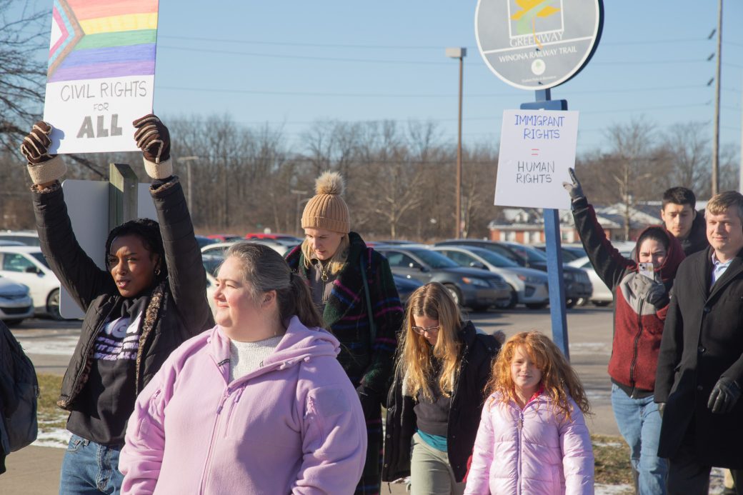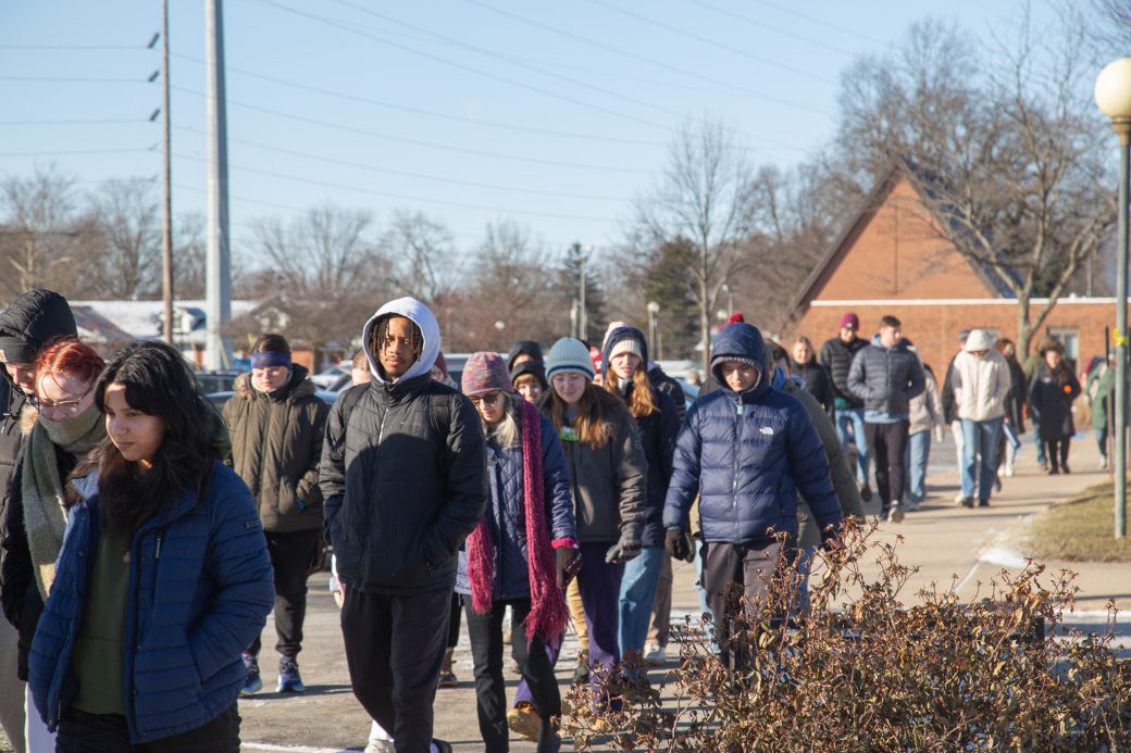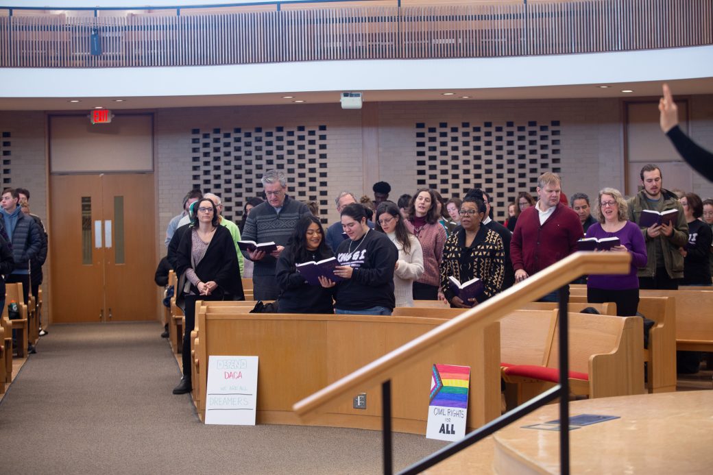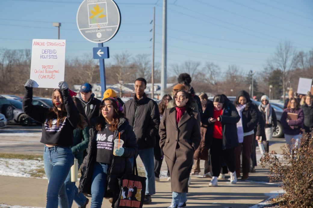 After the convocation, students marched to the Rec-Fit Center, chanting the refrain to “Ella’s Song”: We who believe in freedom / We will not rest!