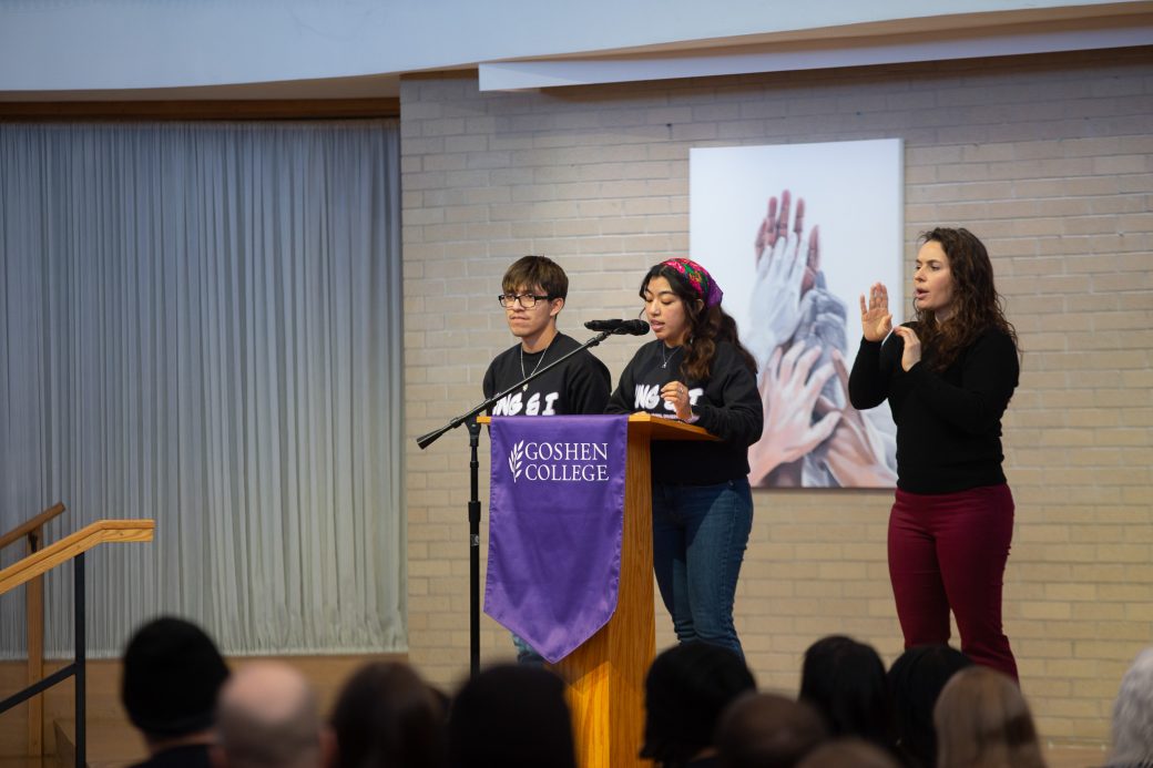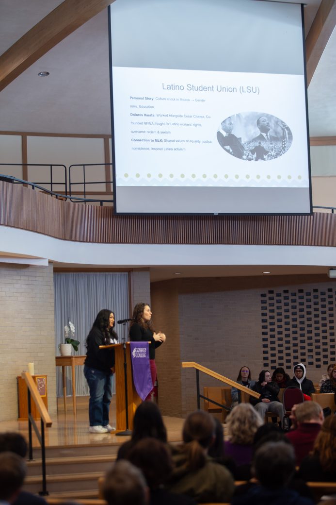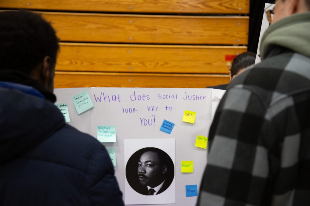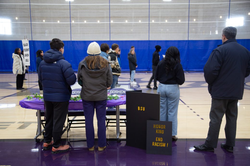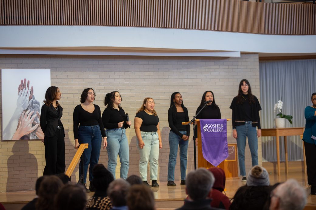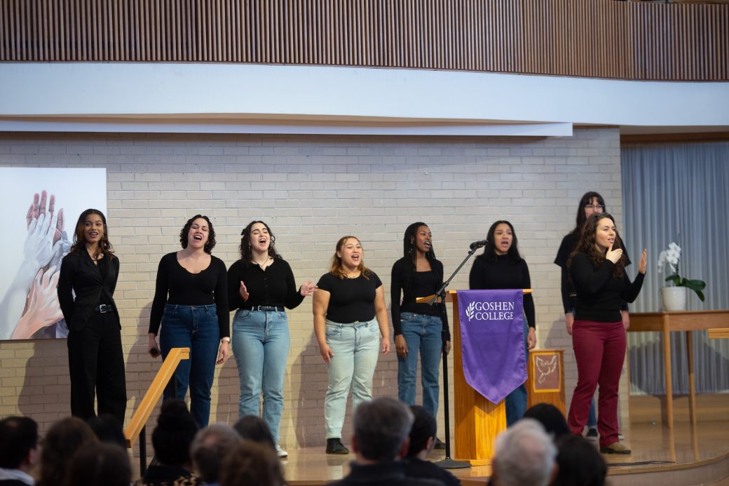 The 2025 Martin Luther King, Jr. Day celebration at Goshen College was split into three distinct, student-led parts. First, students held a convocation featuring a variety of different affinity groups, centered around the MLK quote “The arc of the moral universe is long, but it bends towards justice.”