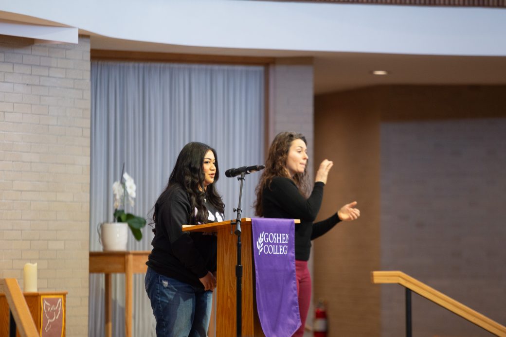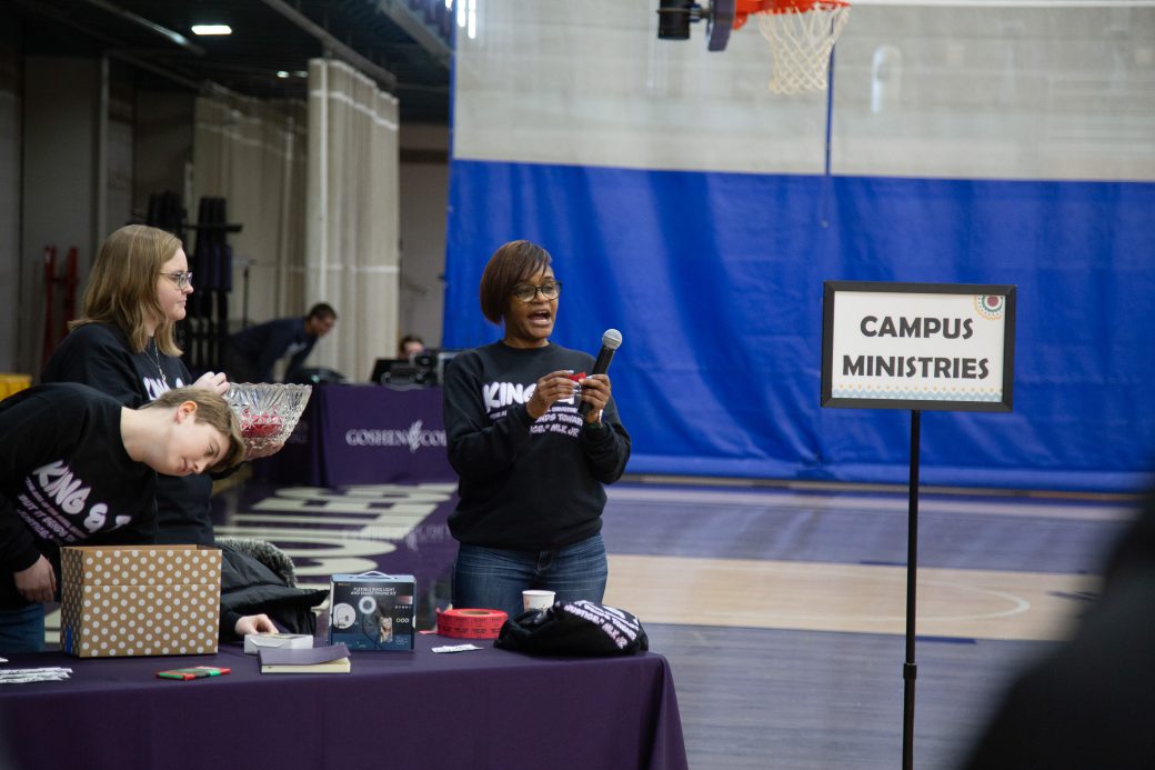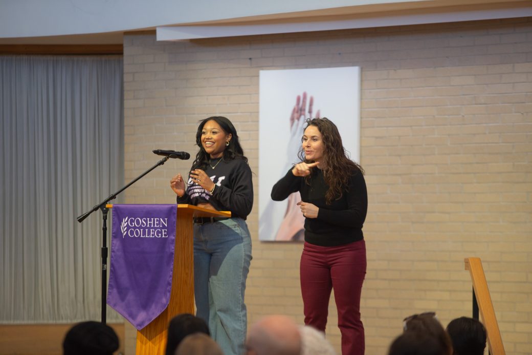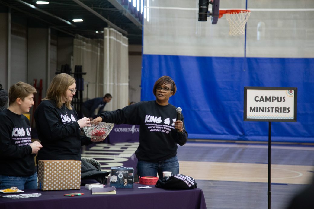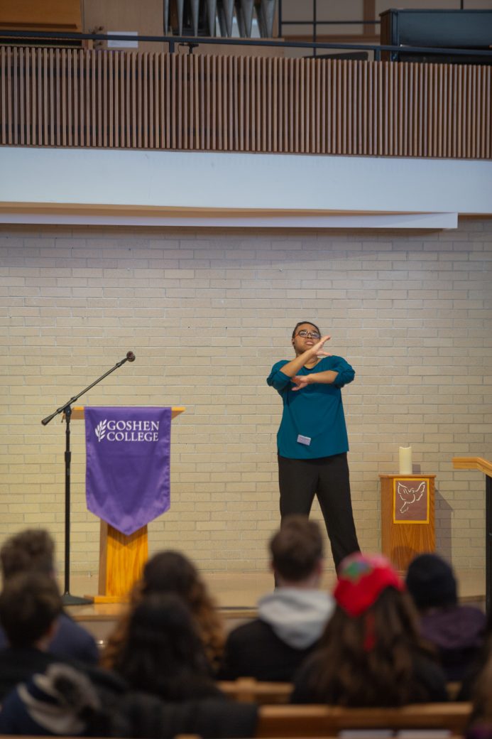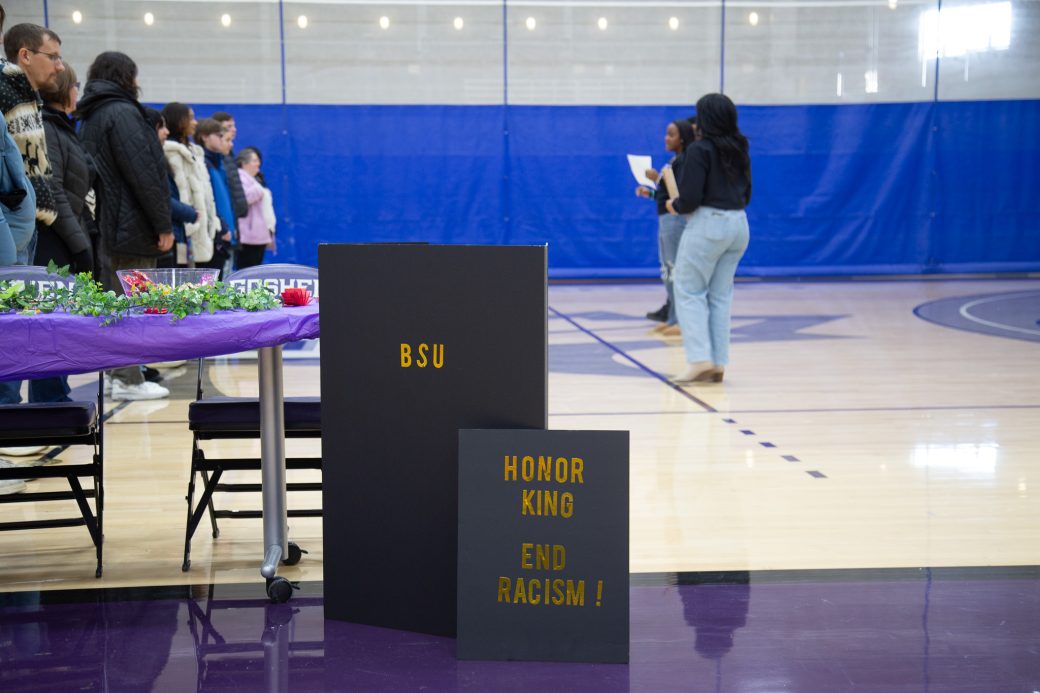The 2025 Martin Luther King, Jr. Day celebration at Goshen College was split into three distinct, student-led parts. First, students held a convocation featuring a variety of different affinity groups, centered around the MLK quote “The arc of the moral universe is long, but it bends towards justice.”