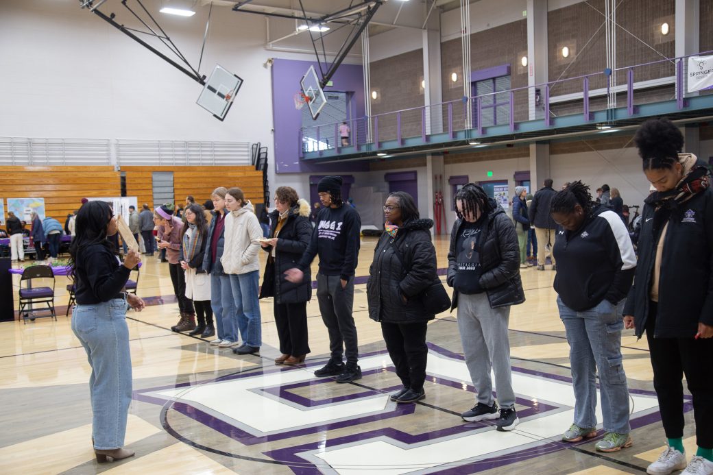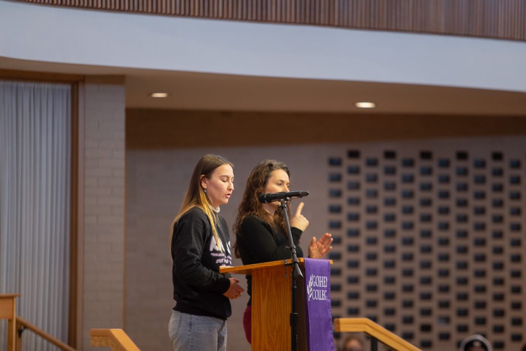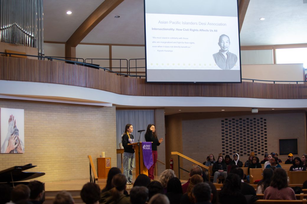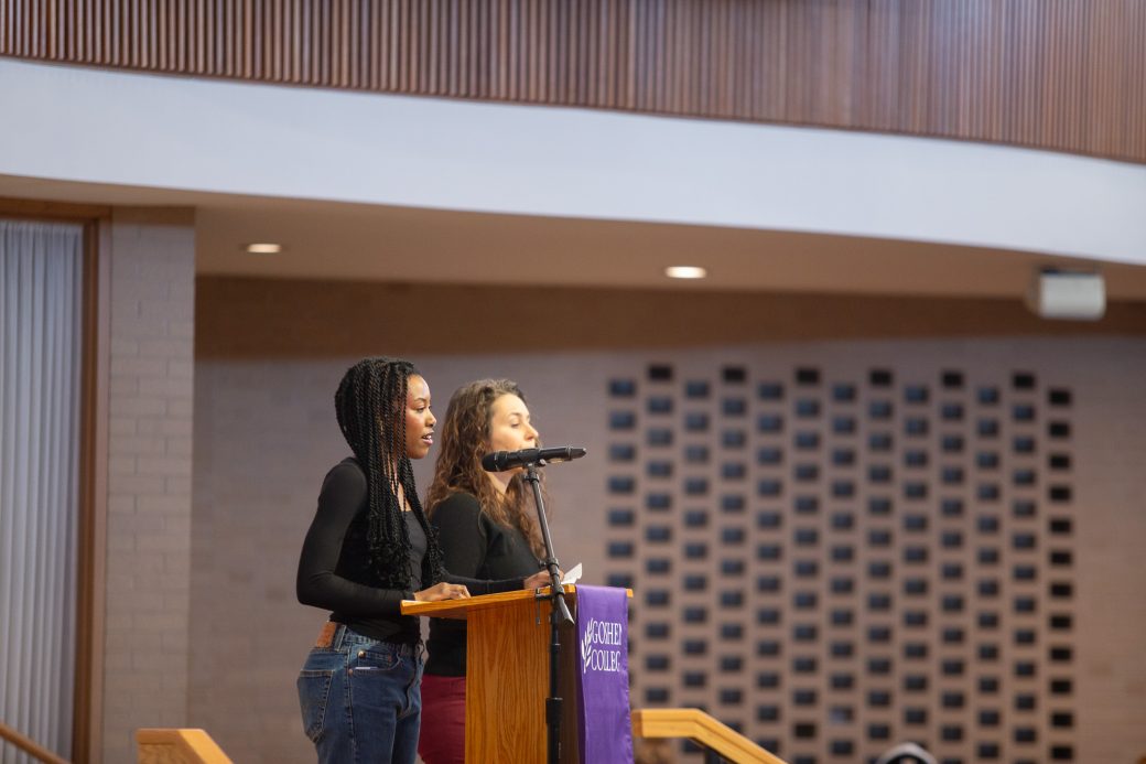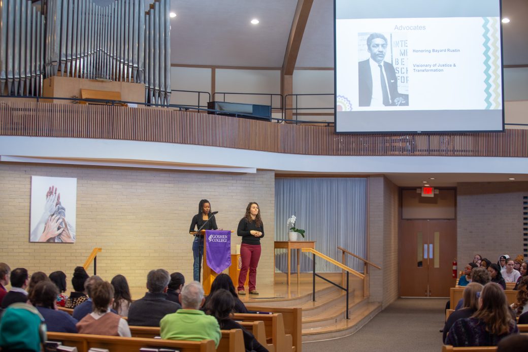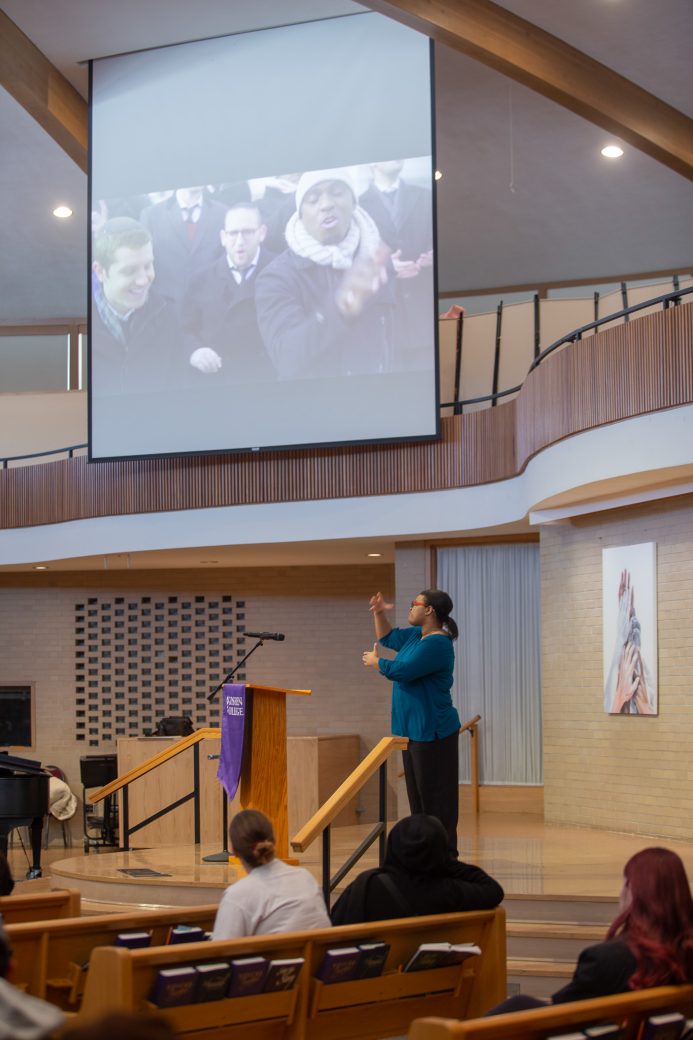 The 2025 Martin Luther King, Jr. Day celebration at Goshen College was split into three distinct, student-led parts. First, students held a convocation featuring a variety of different affinity groups, centered around the MLK quote “The arc of the moral universe is long, but it bends towards justice.”