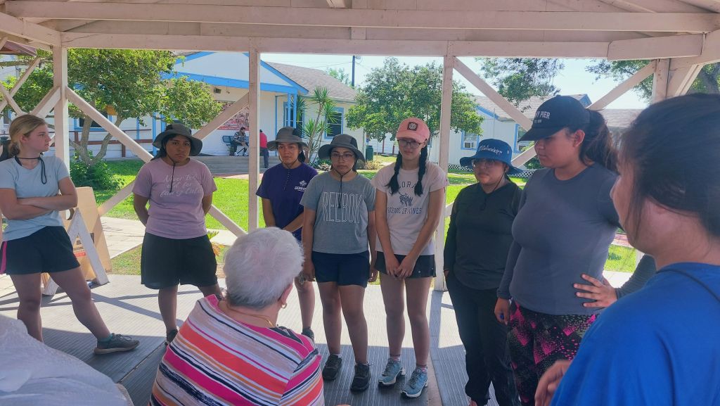 Terminamos nuestra primera semana de trabajo en la Posada. Con un grupo de 11 personas pudimos terminar dos lados del proyecto de cerca que rodea el perímetro de la Posada. A algunas personas se les asignaron tareas diferentes, como mezclar cemento, añadir agua, transportar la carretilla o alinear los postes. Todos nos turnamos haciendo los diferentes trabajos, dándonos la oportunidad de un descanso bajo las ardientes temperaturas que superan los 90 grados farenheit (32 centígrados). Después de haber llenado 22 hoyos con concreto, nos fuimos a una nueva ubicación para llenar los hoyos restantes. Iniciar la construcción de la cerca fue una satisfacción porque estamos creando una fuente de protección para los habitantes de la Posada. Esto no solo reconoce la privacidad de los visitantes, sino que también mantiene una sensación de seguridad para los que encuentran refugio al llegar a la Posada. Curiosamente, uno de los problemas de seguridad es con los medios de comunicación. Proteger la privacidad de los refugiados es importante y estoy orgullosa de ser parte de esto al brindarles este tipo de protección.