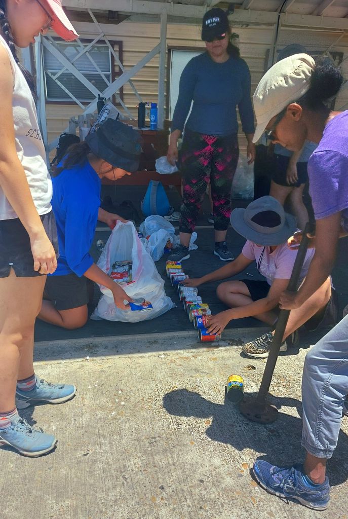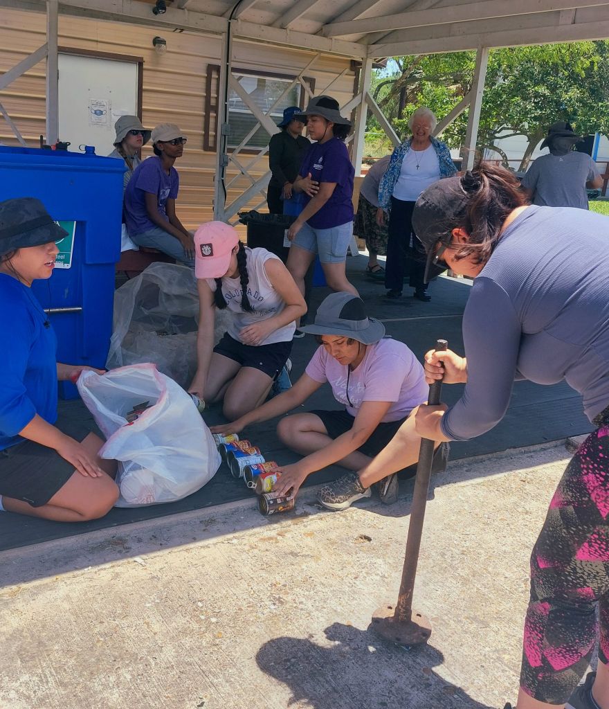 Otra oportunidad que tuvo nuestro grupo fue ayudar a la hermana Thérèse, que vive en la Posada, con su proyecto Cuidado de la Creación en la Posada. Este se enfoca únicamente en el reciclaje y los efectos del cambio climático. Con el aumento de incendios y tormentas, partes del mundo están sufriendo por la falta de agua y alimentos. Con la contaminación de microplásticos en nuestra comida y agua, la Posada se compromete a hacer lo mejor de su parte para combatir la crisis climática. La Posada pone su granito de arena en la lucha contra el cambio climático al reciclar y hacer compost. Fue muy interesante aprender técnicas de composta como el uso de nitrógeno, oxígeno, cartón y ventilación. Al reunir los contenedores de cinco lugares diferentes: dormitorios, porche, pabellón, casa Carolina y la cocina principal, aprendimos qué era reciclable y qué no, y colocamos reciclables en contenedores designados.