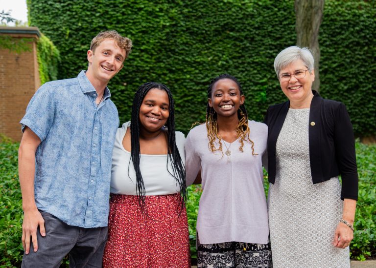 Goshen College President Rebecca Stoltzfus announced this year’s recipients of the Global Citizenship Award: Jakyra Green, Bongiwe Ncube and Caleb Shenk.