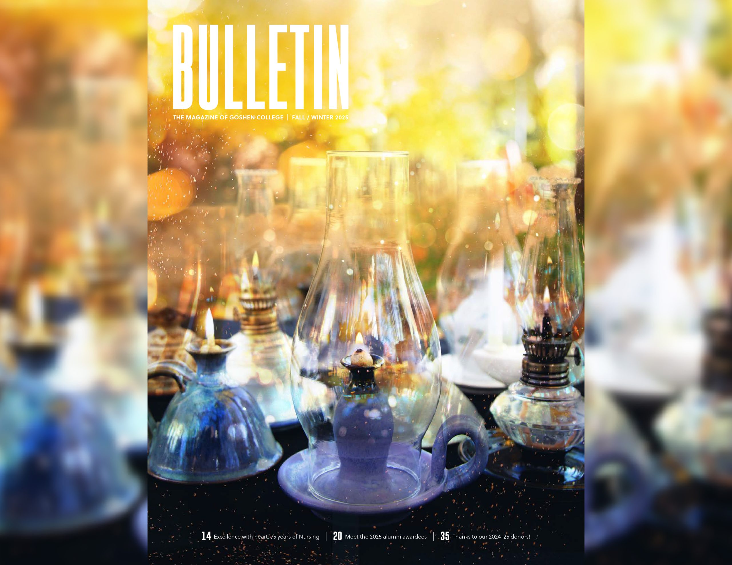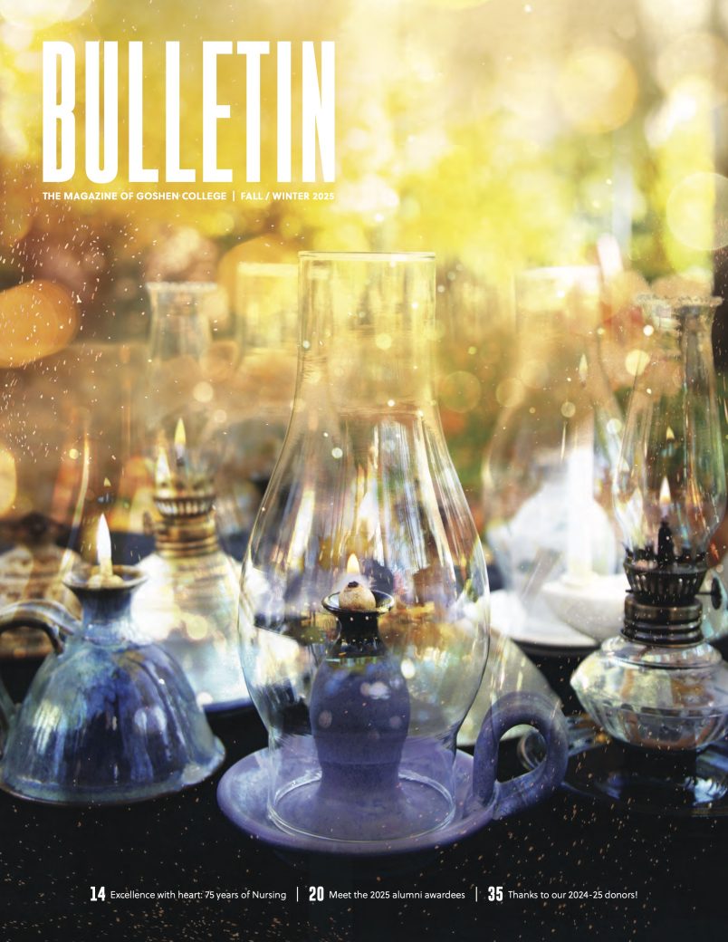 Florence Nightingale, founder of modern nursing, tended to wounded soldiers by the light of a small oil lamp during the Crimean War, earning the enduring title “The Lady with the Lamp.” Today, many nursing programs commemorate their graduates with a symbolic lamp during the pinning ceremony, representing the light of knowledge and compassion. The historic lamps featured on the cover honor seven decades of Goshen College Nursing graduates.