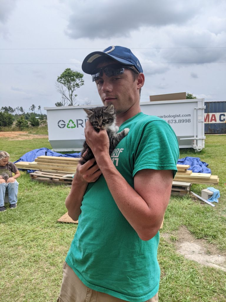 As a 5’10, 150 pound, 19 year old whose hips are as about as messed up as they can get outside of giving birth due to sports injuries, I couldn’t imagine myself doing anything deemed “heroic.” That was until Thursday night, when we were driving down the highway after finishing a house dedication for a family. As we were driving down, we saw two kittens laying in the middle of the highway, only realizing those were kittens when we had just narrowly missed them. I felt something inside my head click and decided that I was going to get out of the car to go rescue those kittens. Thankfully our driver had the same idea and pulled over, as I had already decided I was going to jump out of the car to rescue them, moving at 60 miles an hour or not. As we pulled over and had just barely stopped, I jumped out of the car and started running back towards the part of the highway we saw them at, the driver running after me, afraid that I was going to get turned into roadkill myself. Thankfully there were no cars on the road when I ran out to grab one of the kittens and bring it to safety, although I was fully prepared to stop a car to save it, which in hindsight was probably a terrible idea. I ended up spending the next 2 hours with it back at our camp to make sure it was comfortable and went to the store later that night to make it some food to eat.