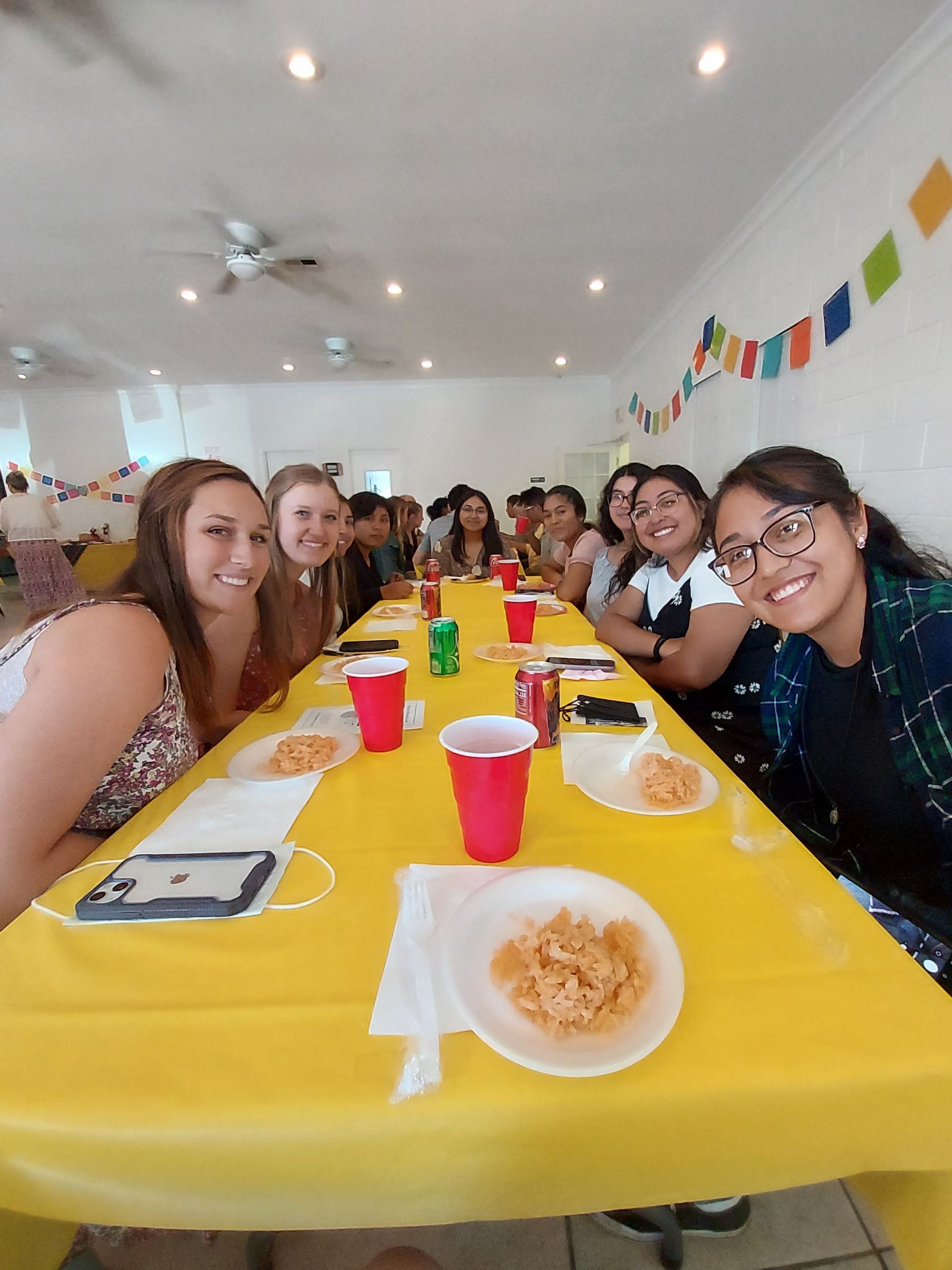 Tal como lo experimentamos anoche en la cabaña al lado del río, las personas en esta área son unos anfitriones maravillosos. Toda la iglesia se unió para asegurarse de que tuviéramos una tarde maravillosa. Nuestro almuerzo consistió en arroz, tostadas preparadas, limonada natural, flan y helado, sin mencionar la mesa llena de dulces mexicanos que también nos ofrecieron. Después, ayudamos a sacar las sillas y mesas al patio. Algunos miembros de la congregación, incluyendo los jóvenes, se unieron a nosotros ya que se había rentado un gran tobogán de agua inflable. Nos pasamos las horas jugando juegos de mesa, resbalandonos en la resbaladilla de agua con los niños de la congregación y socializando con los miembros de la iglesia menonita. Además nos ofrecieron más comida, consistiendo en paletas heladas, mangos frescos y sandía recién cortada.