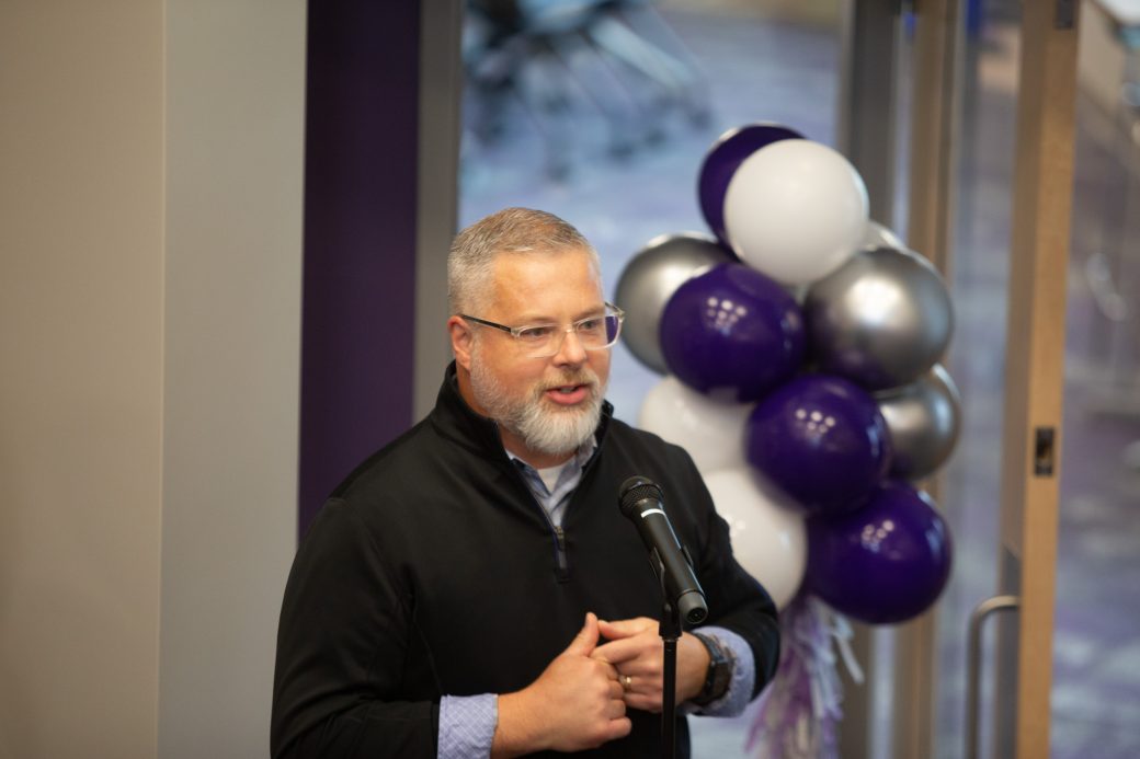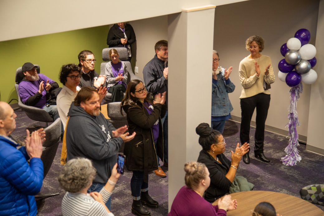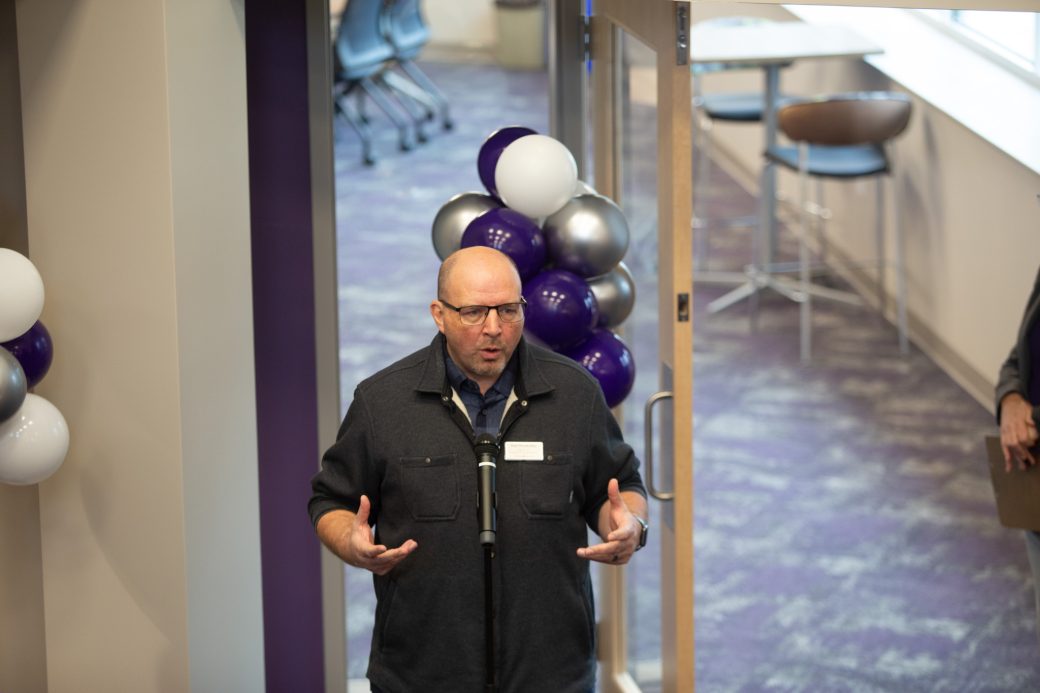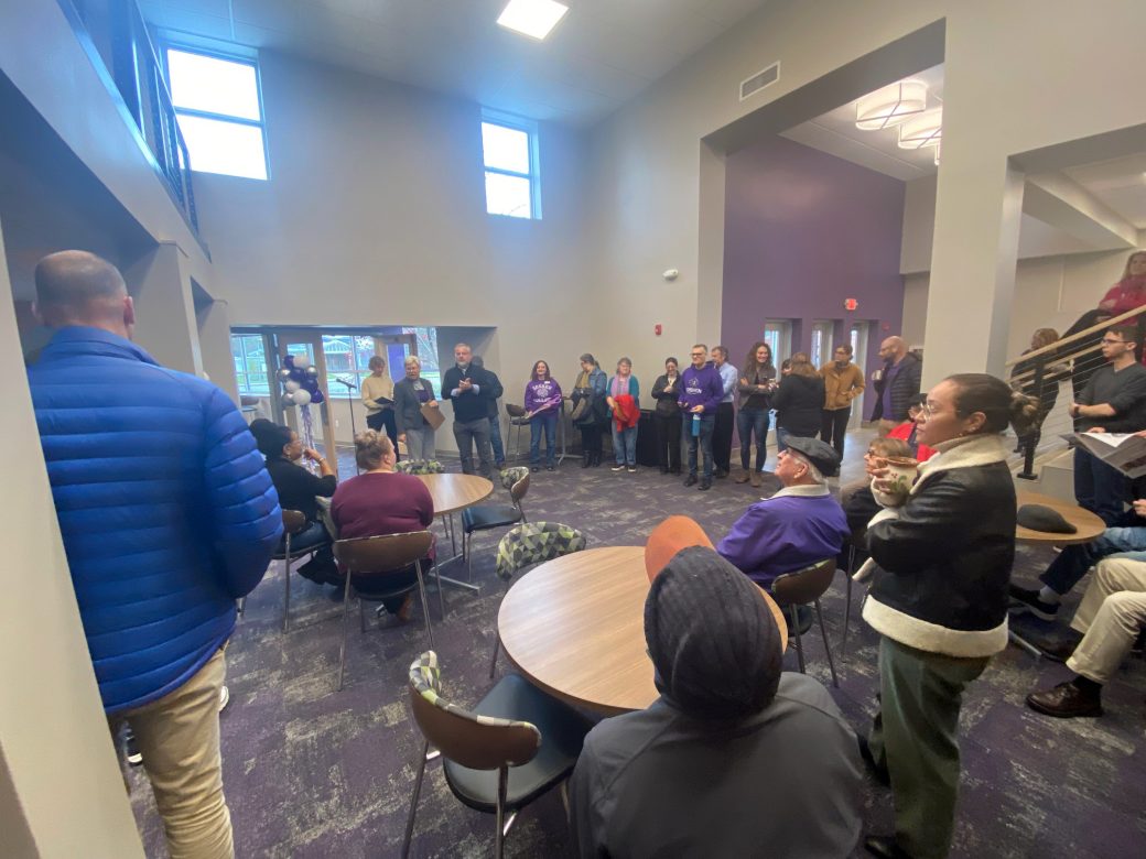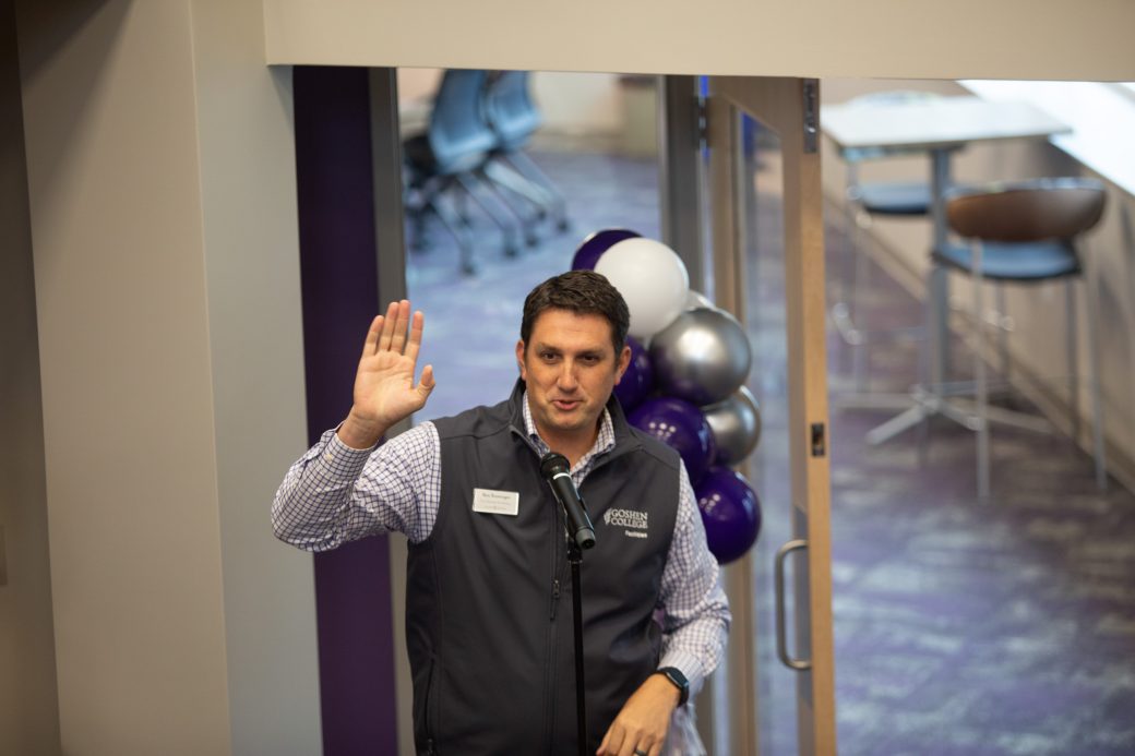 On Nov. 22, the renovated full first floor of Westlawn Hall was opened to campus to enjoy and celebrate. President Rebecca Stoltzfus offered opening words in the Gunden Commons — a new multilevel space for studying, connecting and gathering — before cutting the ribbon and celebrating the official opening. Faculty, staff, retirees and students explored the spaces — including a renovated kitchen, dining hall and a new outdoor dining area named the Miller Terrace — and enjoyed cookies in the new Mark Community Room, which will host meetings and events. A public ribbon cutting and celebration of the fully renovated building and new Center for Nursing and Public Health will take place in the spring.
